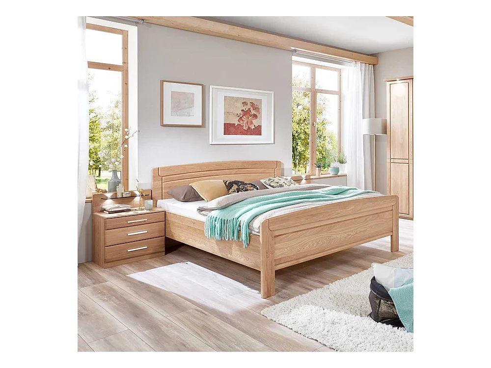 Ehebett aus Eiche teilmassiv Nachtkonsolen (dreiteilig)
