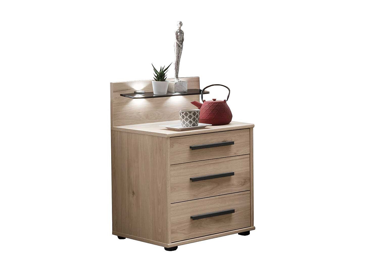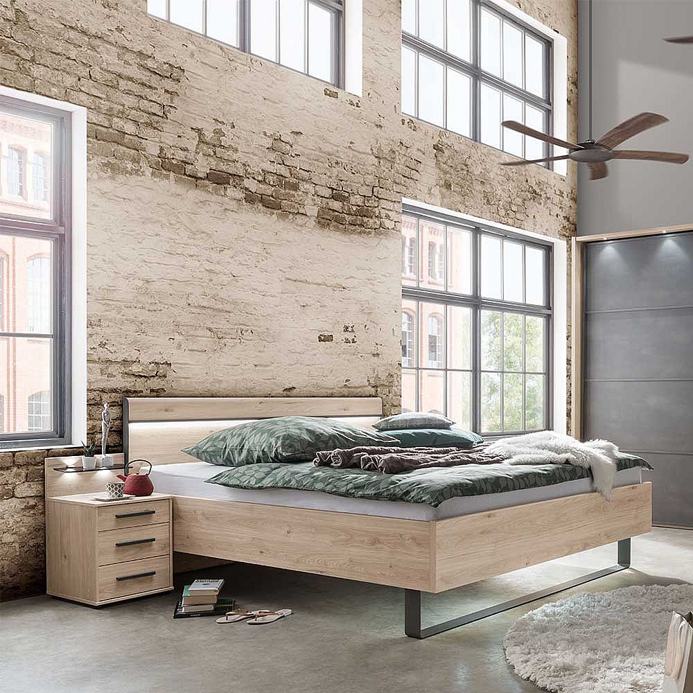 Ehebett in Eichefarben und Dunkelgrau LED Beleuchtung (dreiteilig)