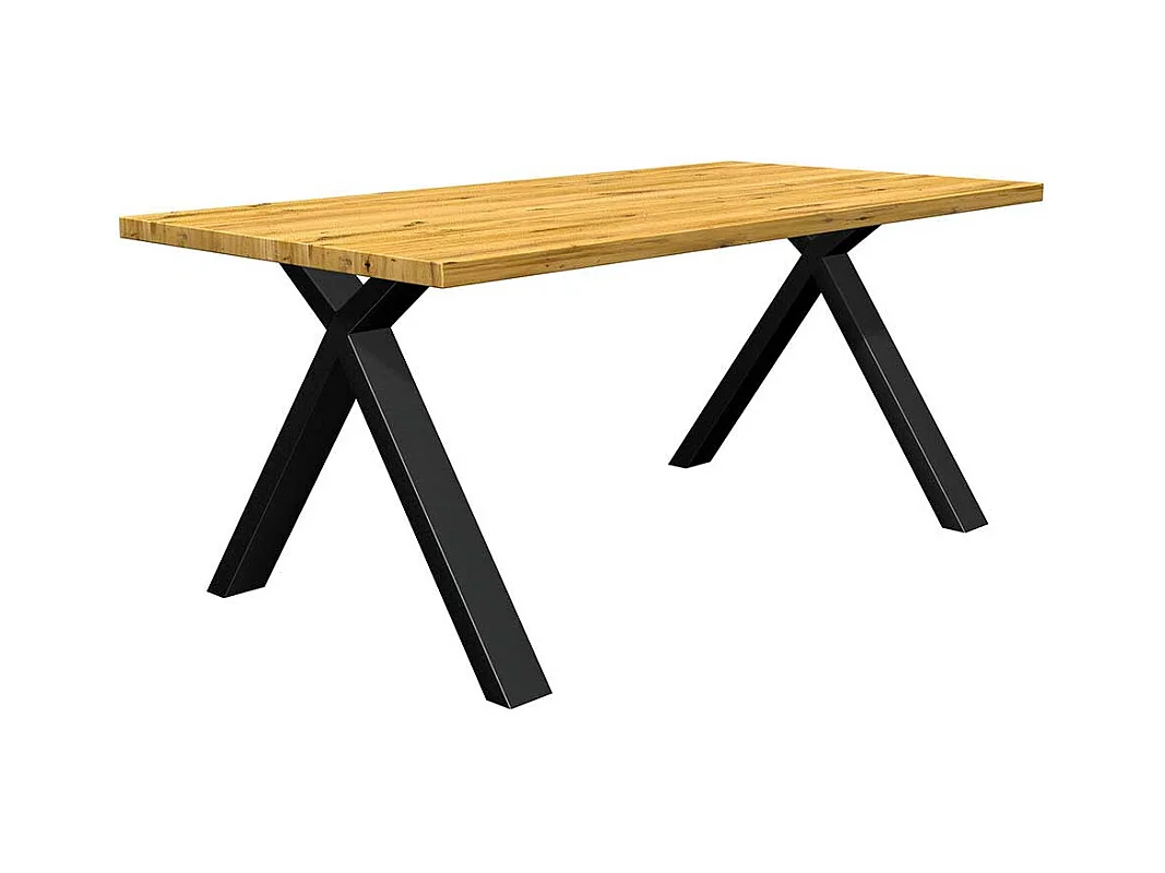 Eiche Esstisch modern aus Massivholz und Metall rechteckiger Tischplatte