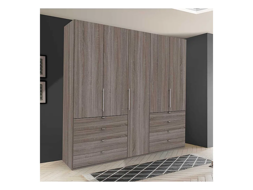 Eiche Trüffelfarbener Kleiderschrank 3 türig acht Schubladen