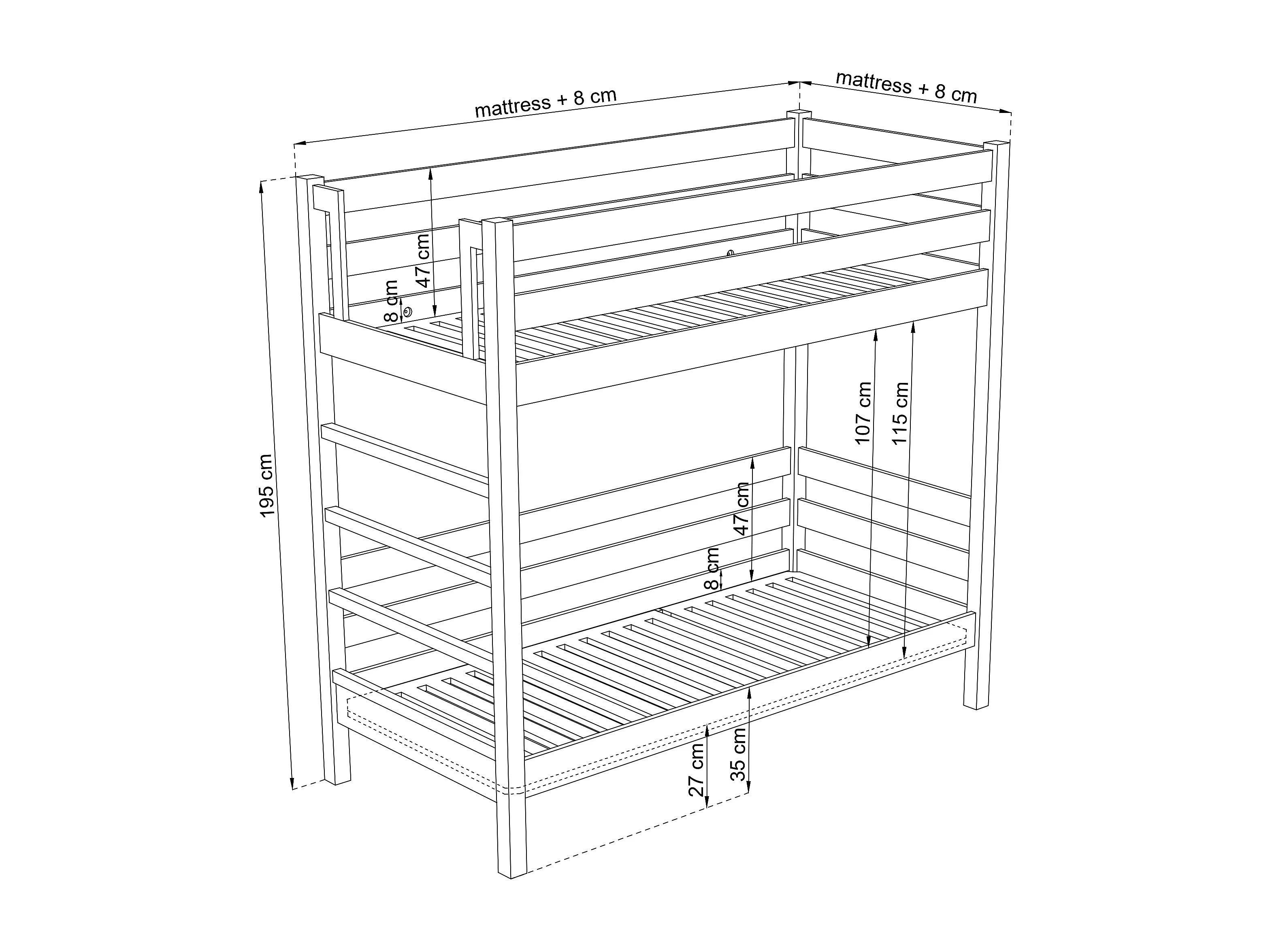 ETAGENBETT N03 Sonoma Eiche 80x190