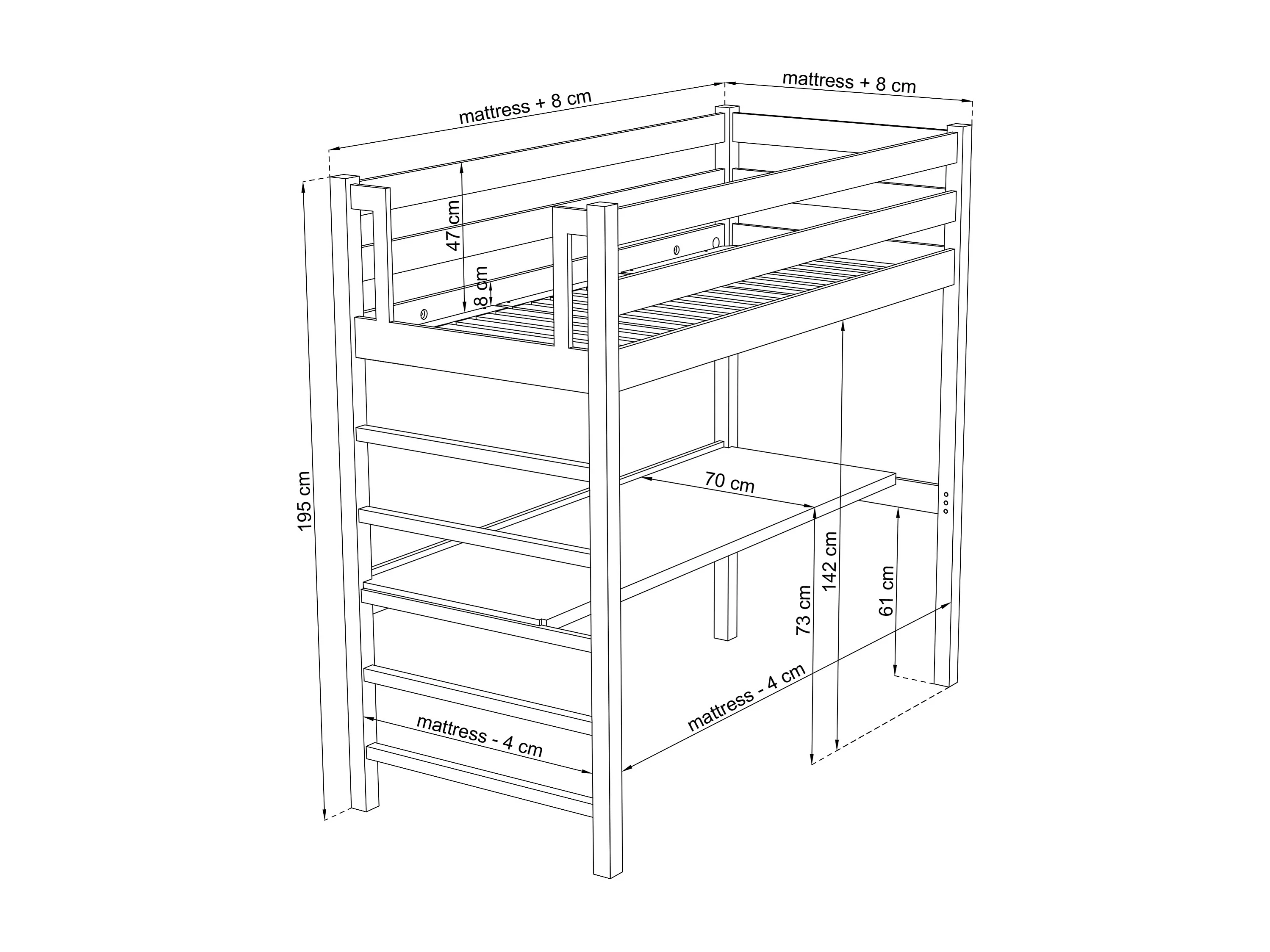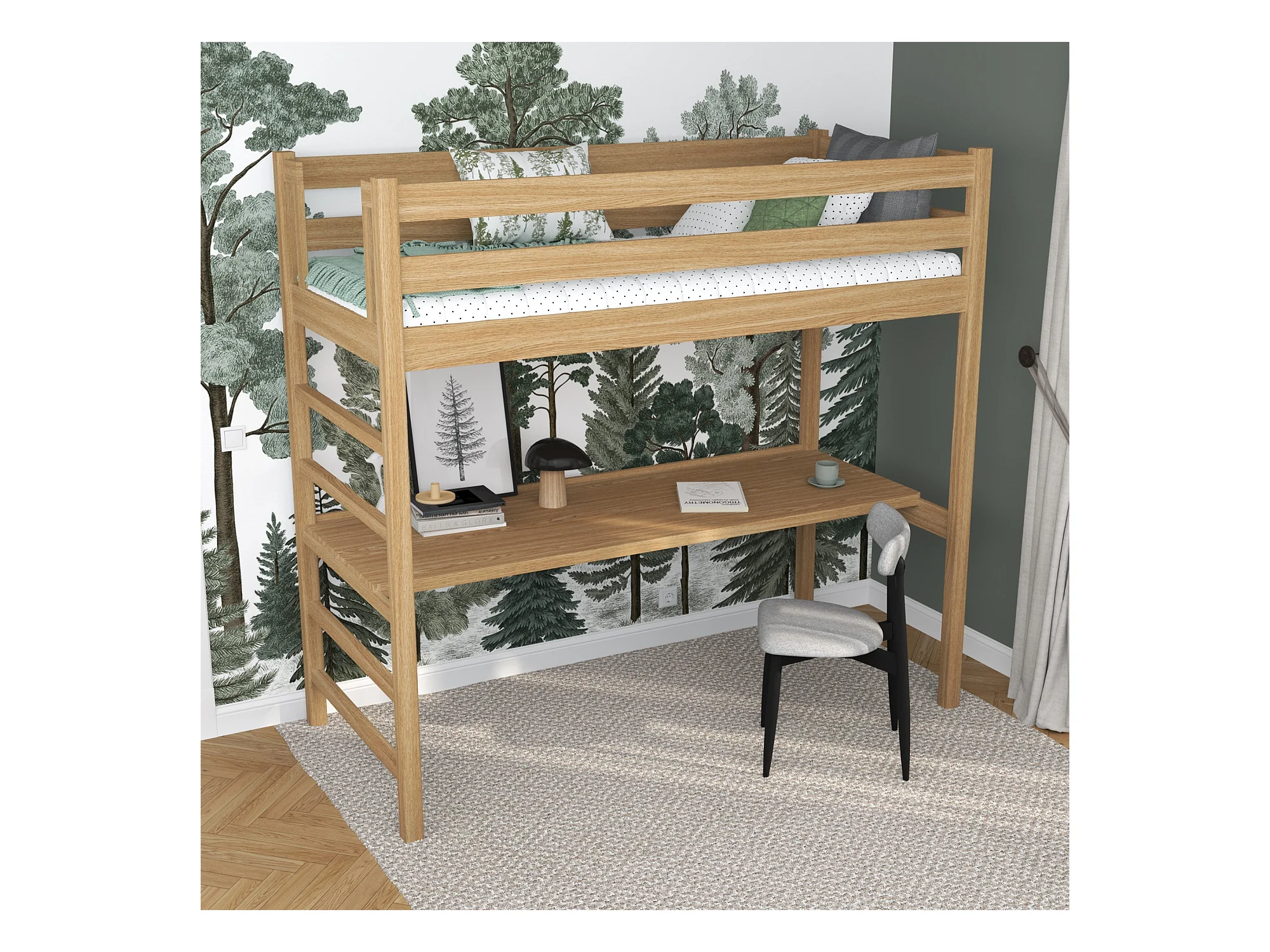 HOCHBETT N01 mit Schreibtisch Eiche Natur 100x190