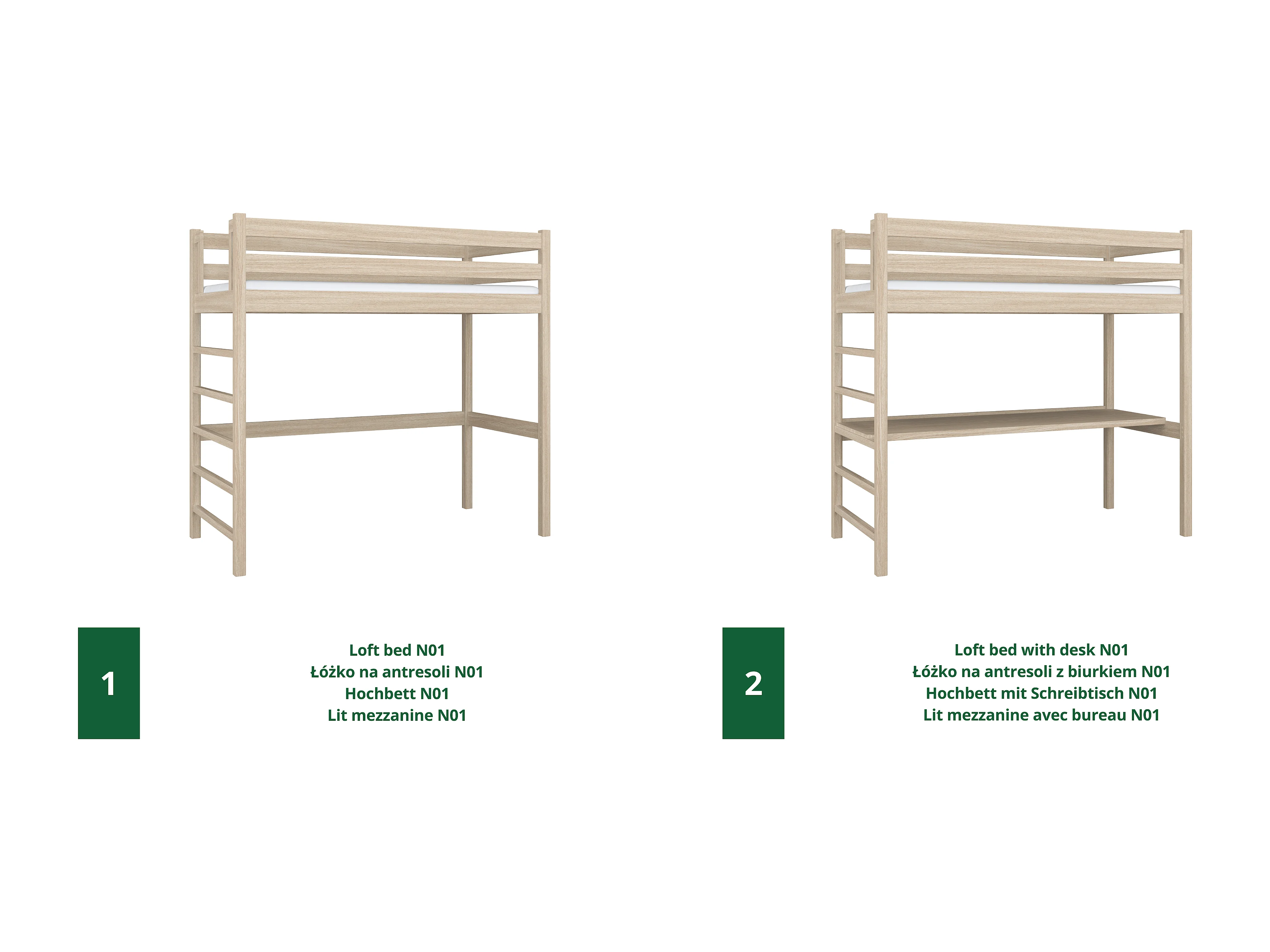 HOCHBETT N01 mit Schreibtisch Sonoma Eiche 120x180