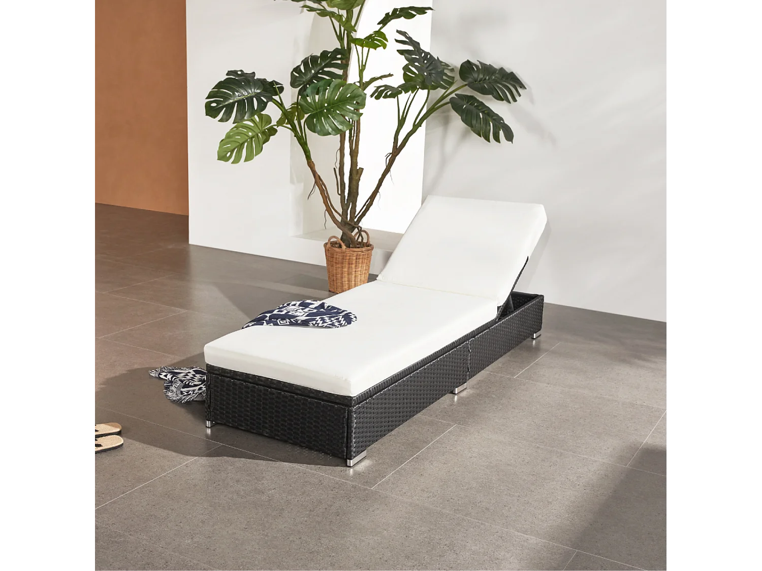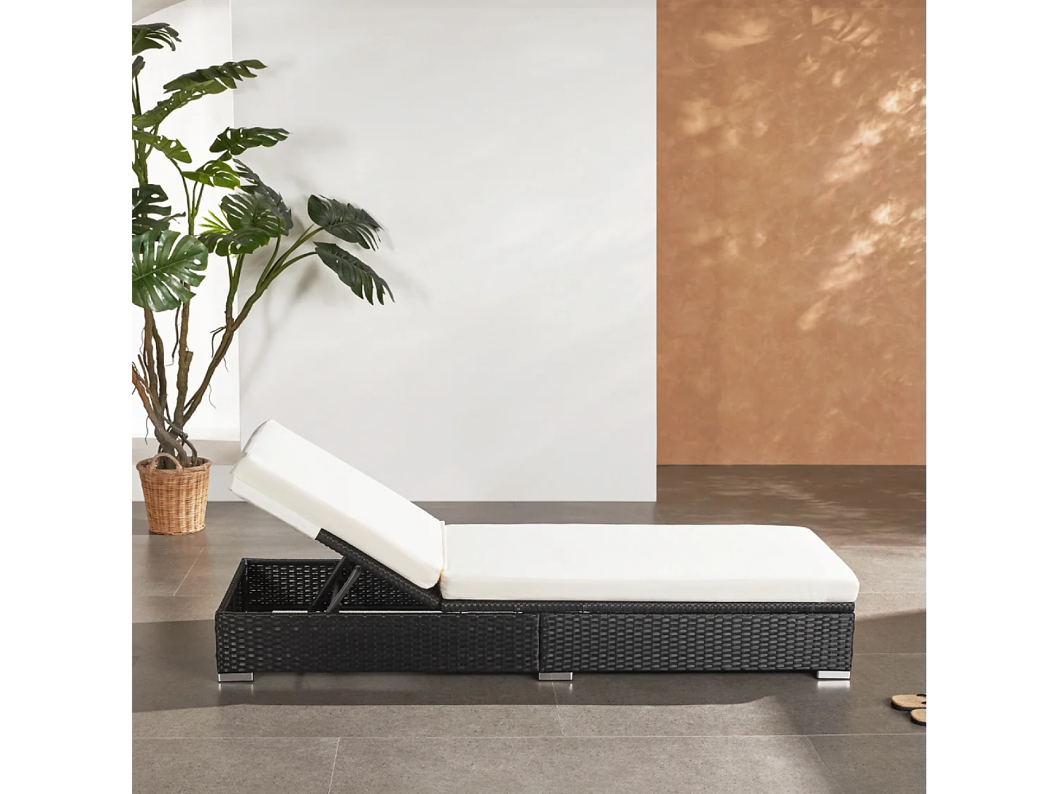 Eichenbuffet mit schwarzem Geflecht aus Harz und weißer Matratze 120 cm