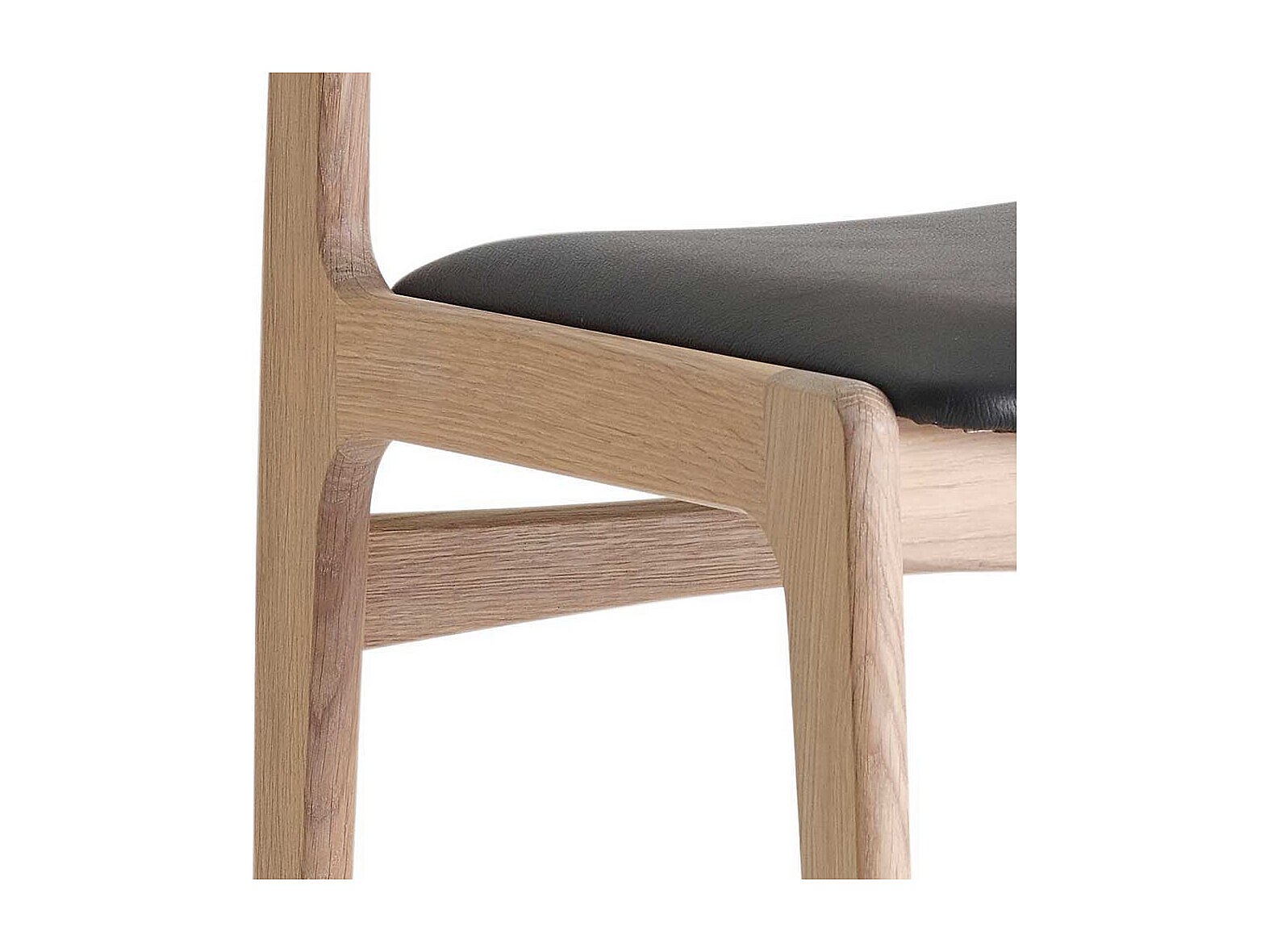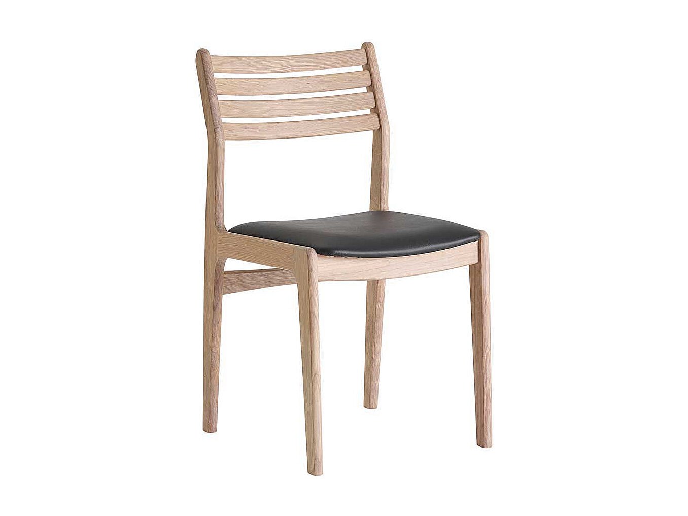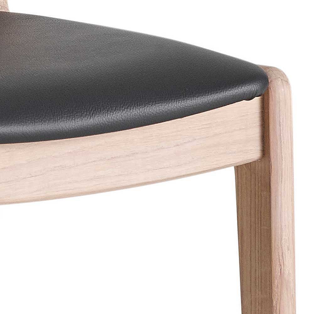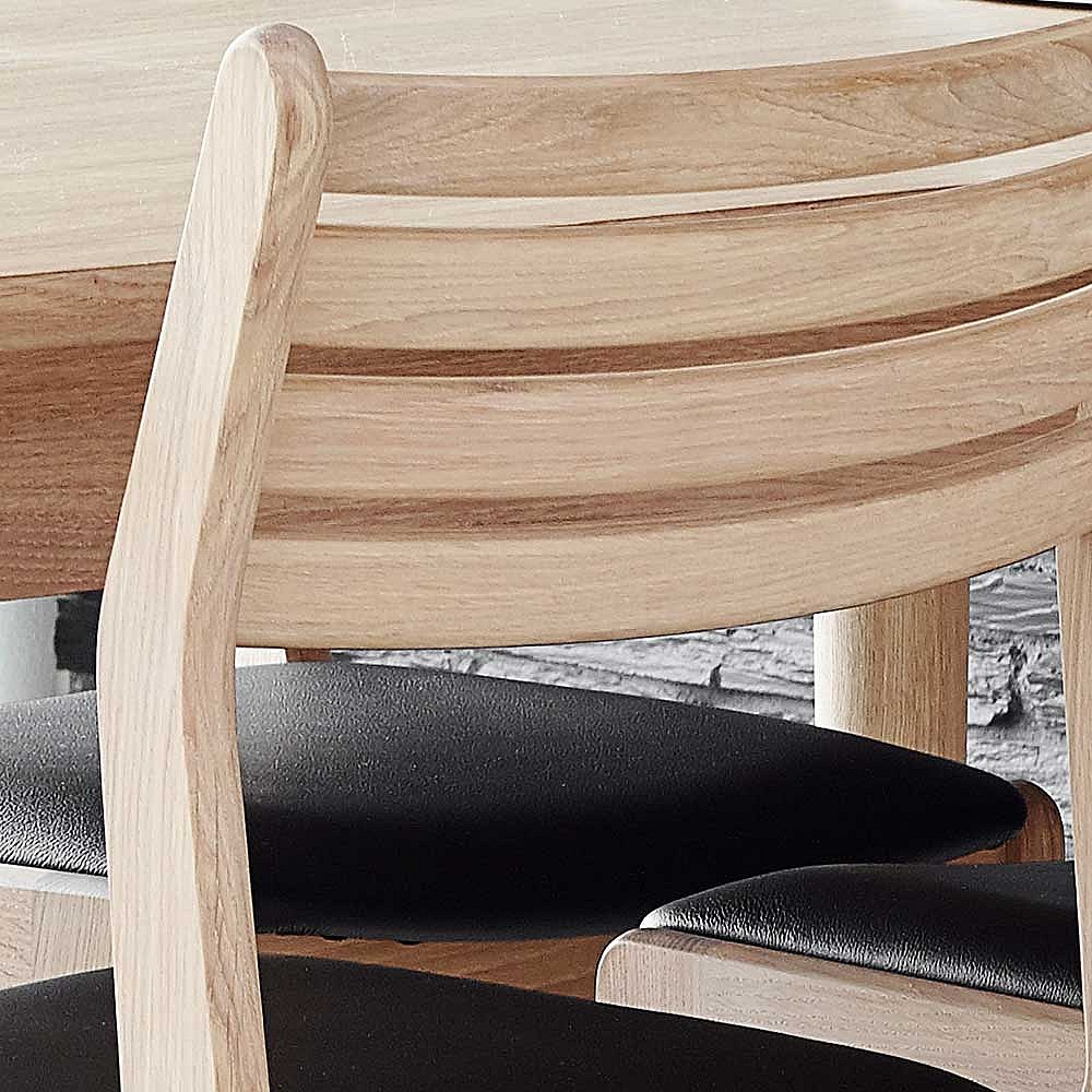 Eichenholzstuhl massiv und Bianco ge�lt Ledersitz in Schwarz (2er Set)