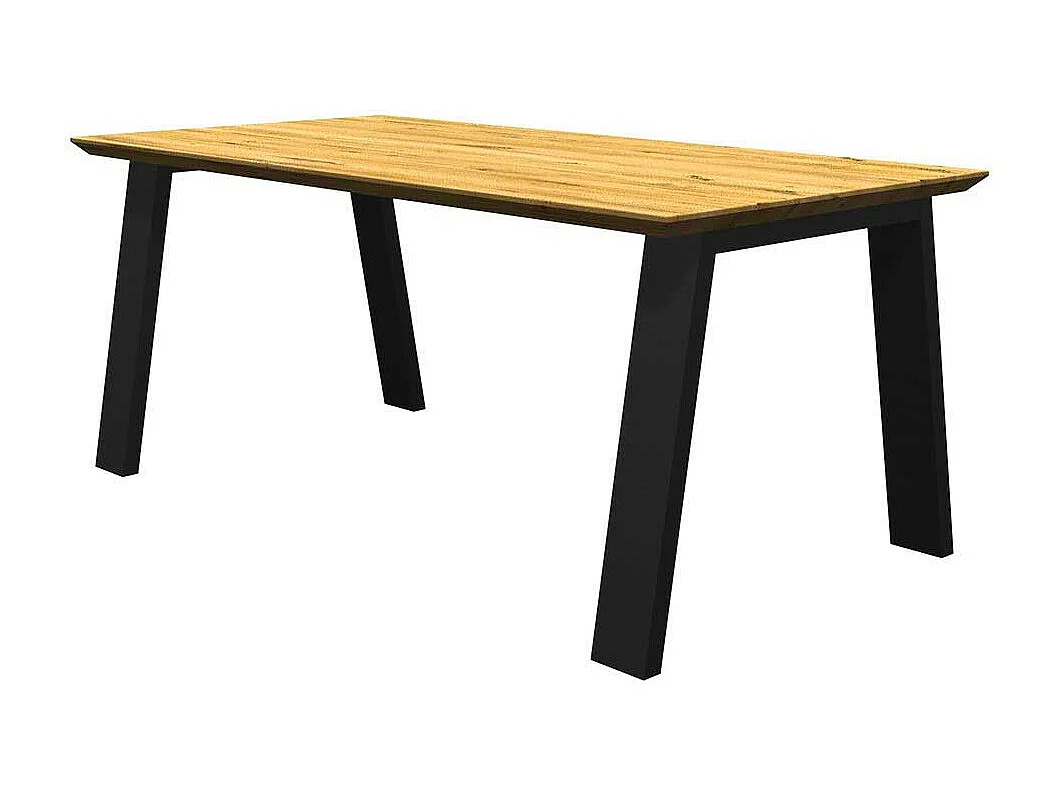 Eichentisch massiv mit Schweizer Kante Metall Vierfußgestell
