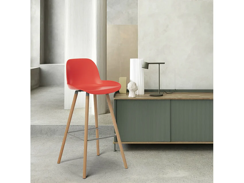 Eiffel Burj 65 moderner hoher Hocker für Bar und Küche Skandinavisches Design - Rot