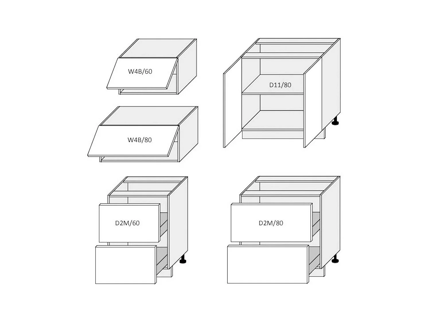 KÜCHENLEERBLOCK Platinium weiß matt / schwarz - weiß Hochglanz 14-teilig