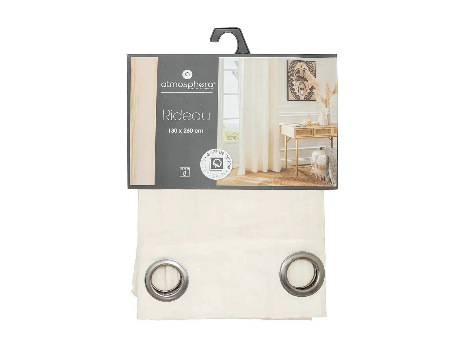 Einfarbiger Vorhang aus Baumwollgaze 130 x 260 cm