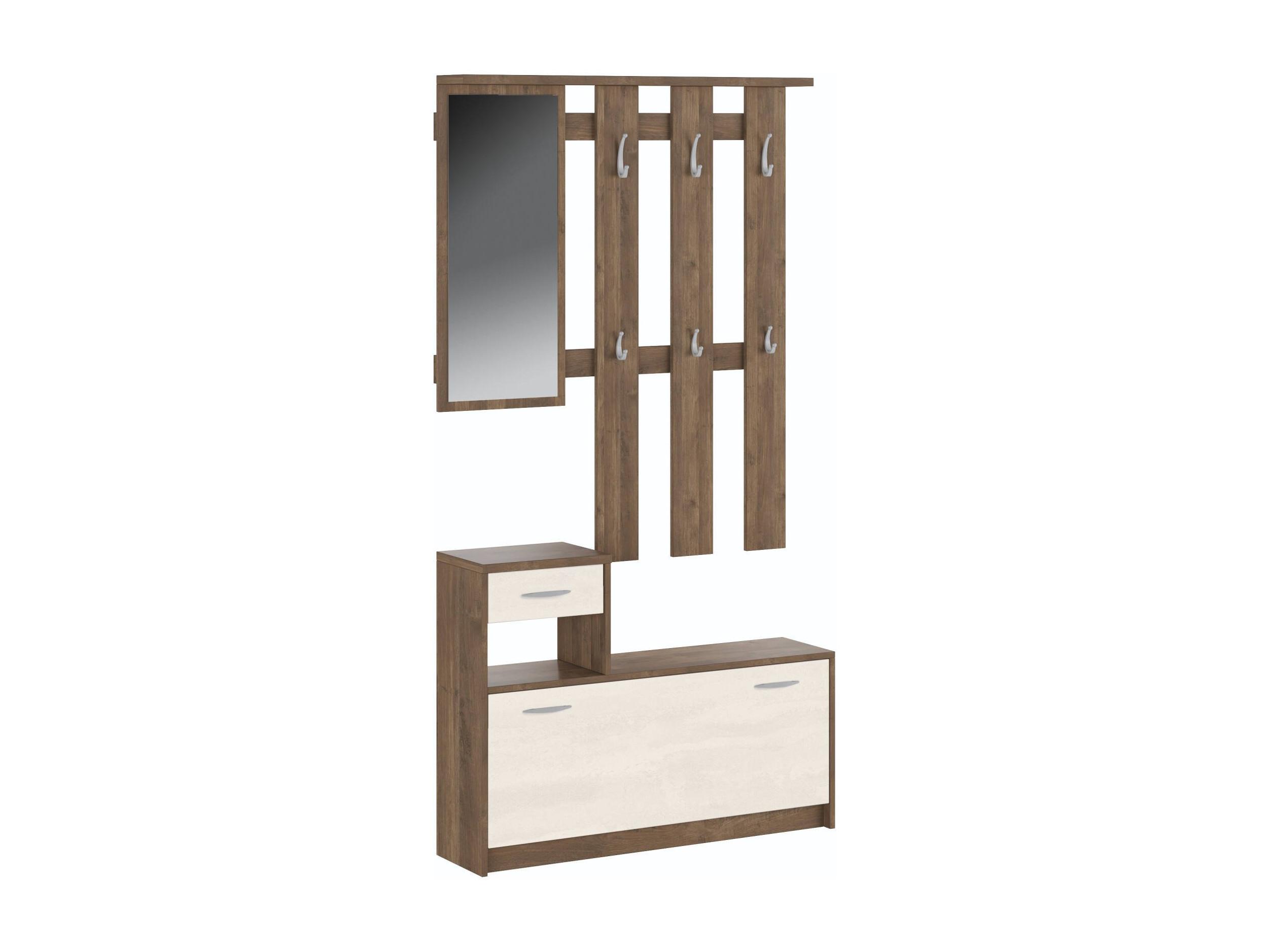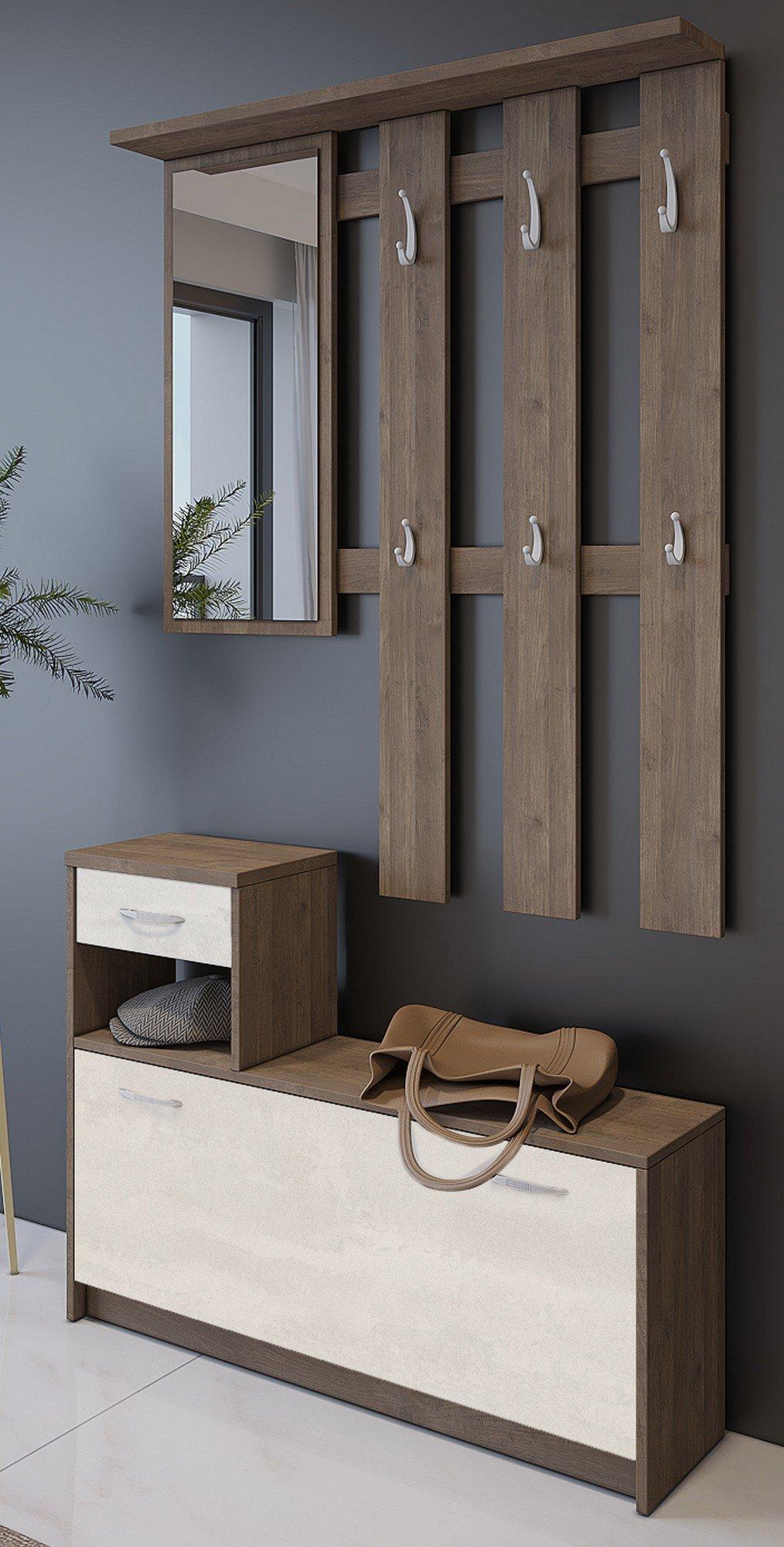 Eingangsmöbel Clint, Moderner Eingangsbereich mit Spiegel, Schrank mit Schuhregal, Multifunktionsschrank, 100x25h180 cm, Weiß und Eiche