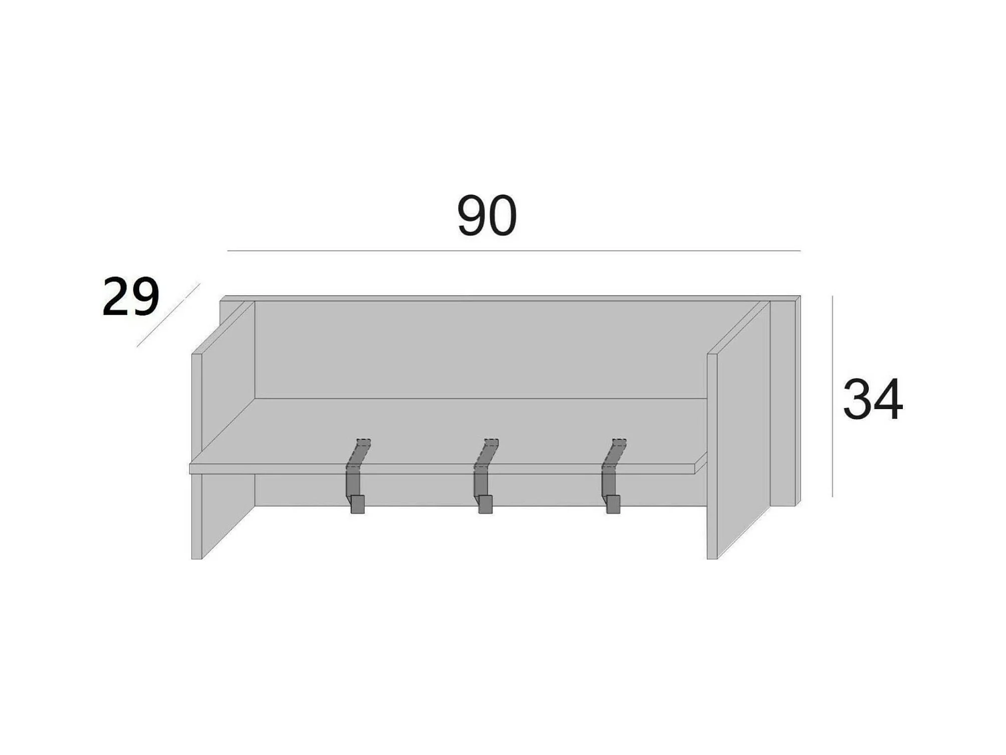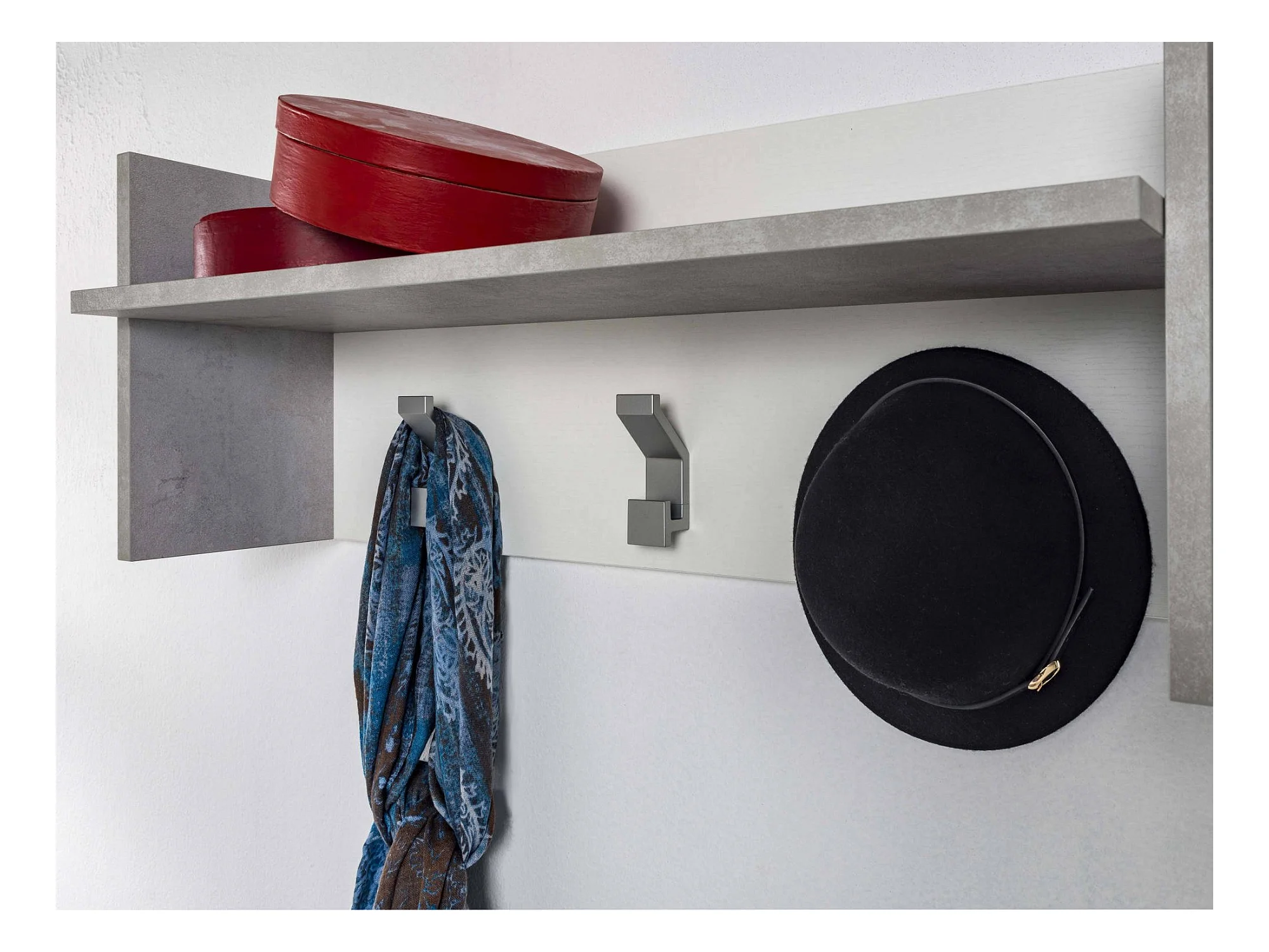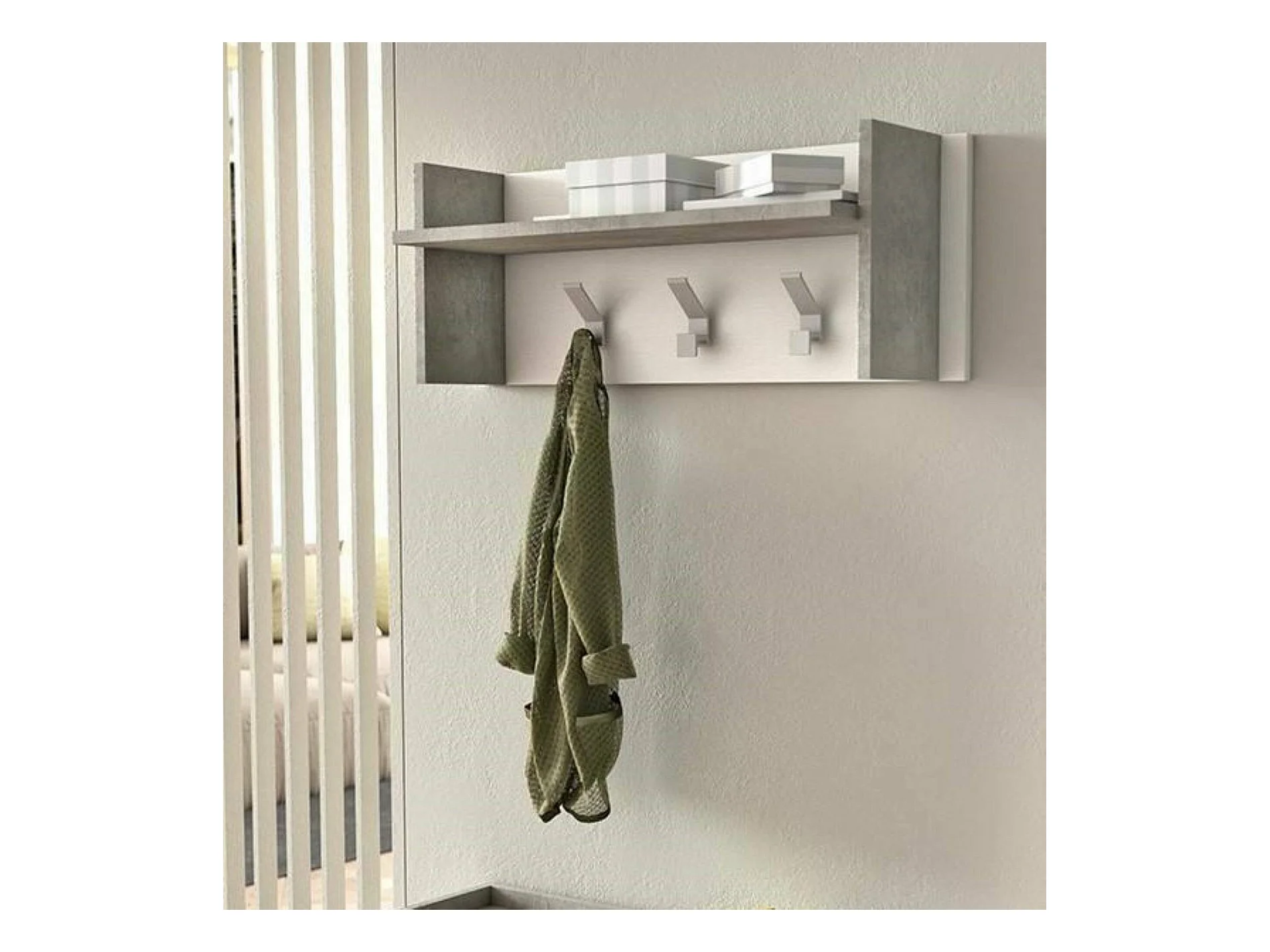 Eingangsmöbel Dkornvi, Garderobenständer mit 3 Haken, Regal zur Aufbewahrung im Flur, 100% Made in Italy, 90x29h34 cm, Weiß und Beton