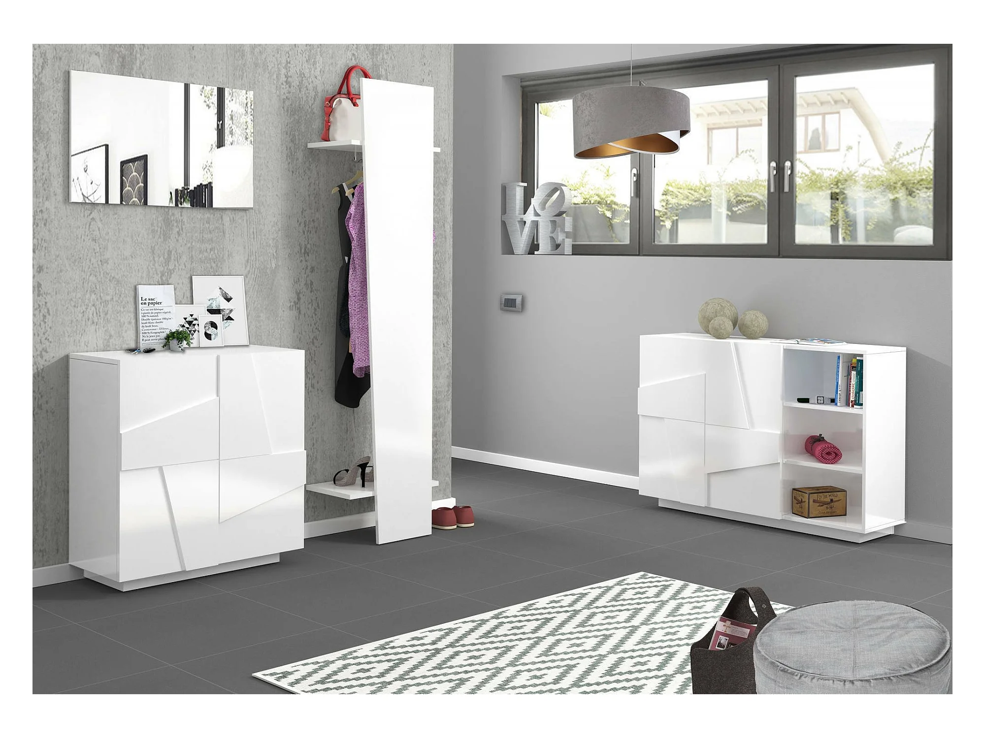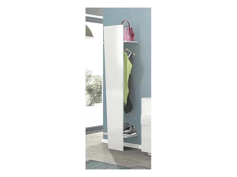 Eingangsmöbel Dmasell, Moderner multifunktionaler Eingangsbereich, Mehrzweckschrank für Eingangsbereich, 100 % Made in Italy, cm 50x30h200, glänzend weiß lackiert
