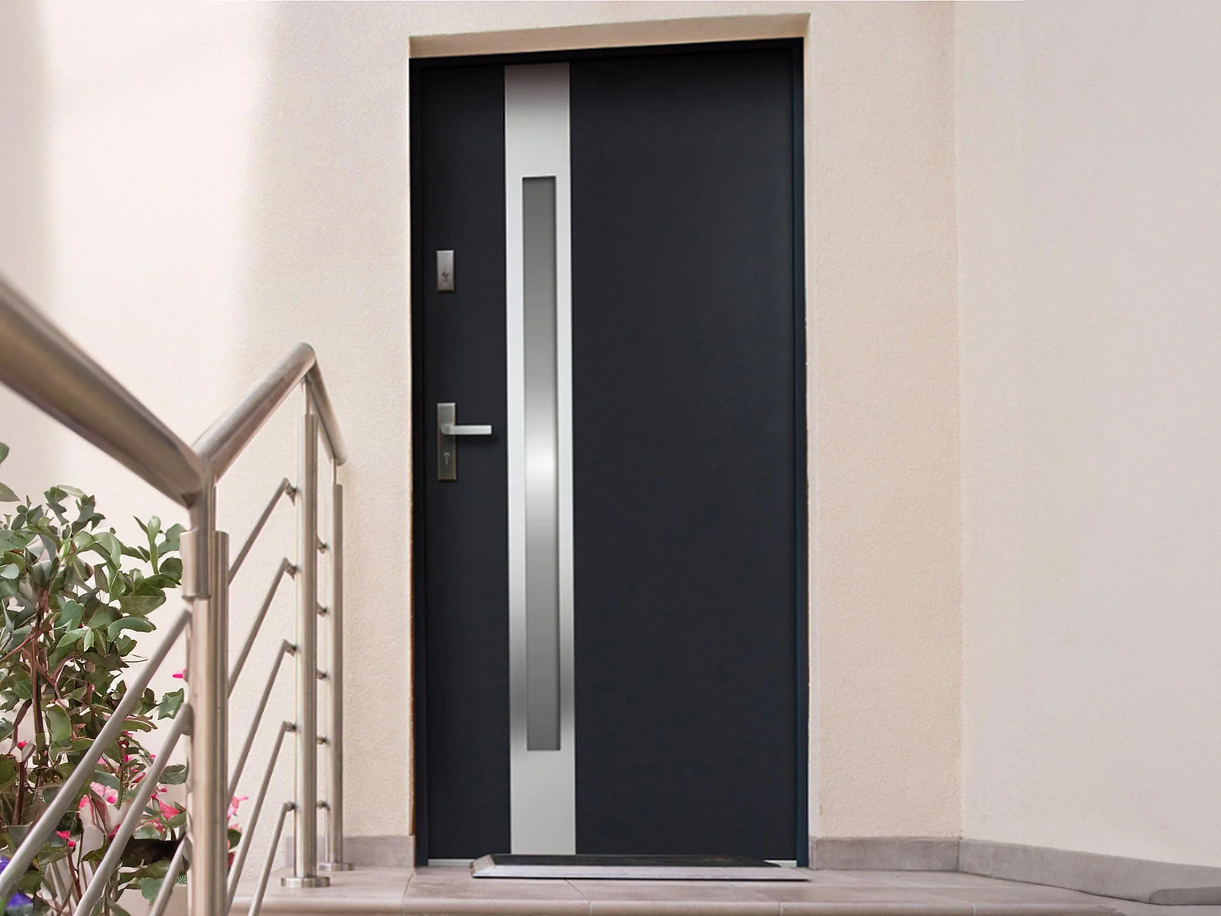 Eingangstür mit Türanschlag rechts - Stahl & Edelstahl - 207 x 100 cm - Anthrazit - BRAGA