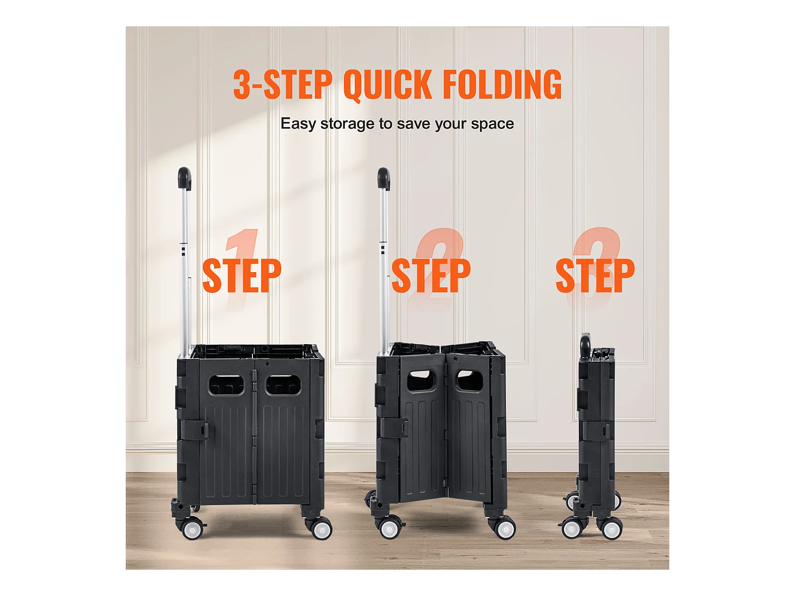 Einkaufswagen, SucceBuy Klappbarer Einkaufswagen, Nutzwagen mit 49.8 kg Tragkraft und Teleskopgriff