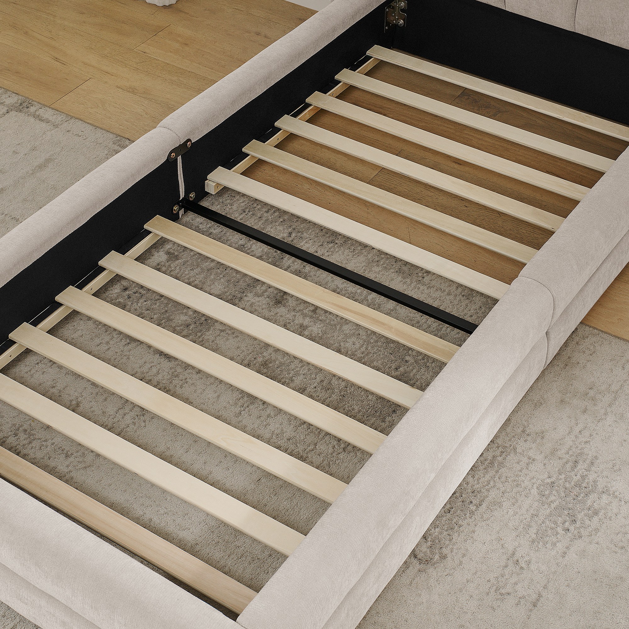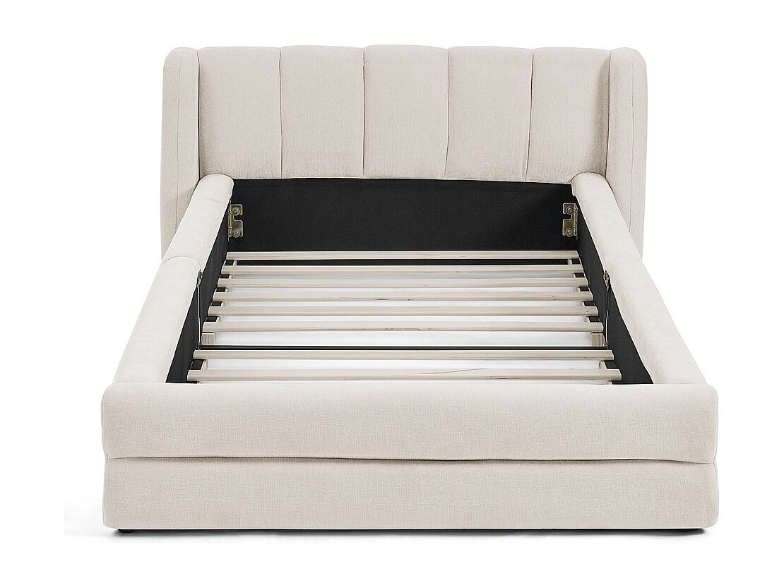 Einzelbett 90 x 200 cm – Kinderbett mit weicher Rückenlehne – beiger chenille-stoff – matratze nicht enthalten