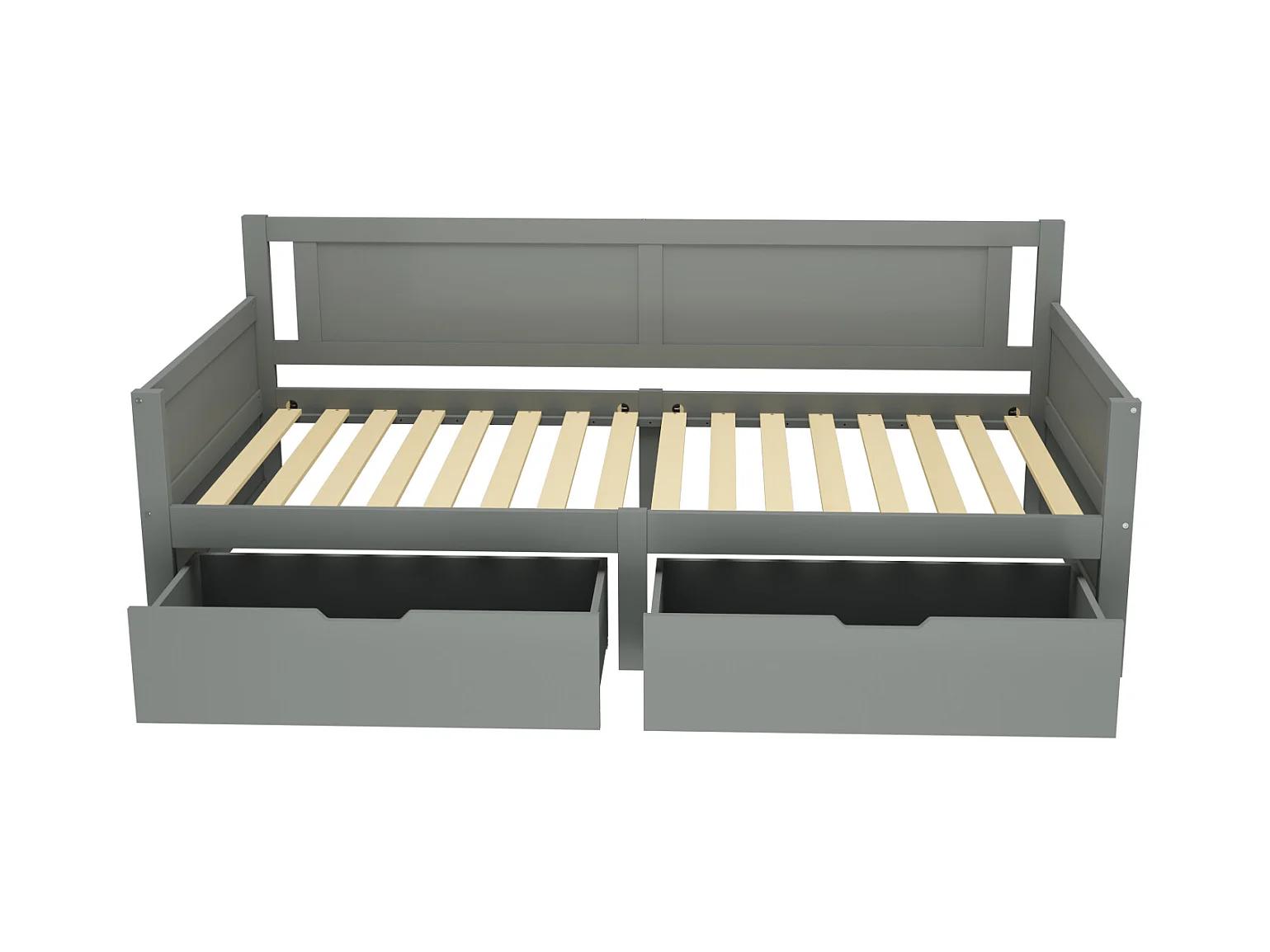 Einzelbett 90 x 200 cm mit 2 Schubladen aus Massivholz für Kinder – Lattenrost – Grau