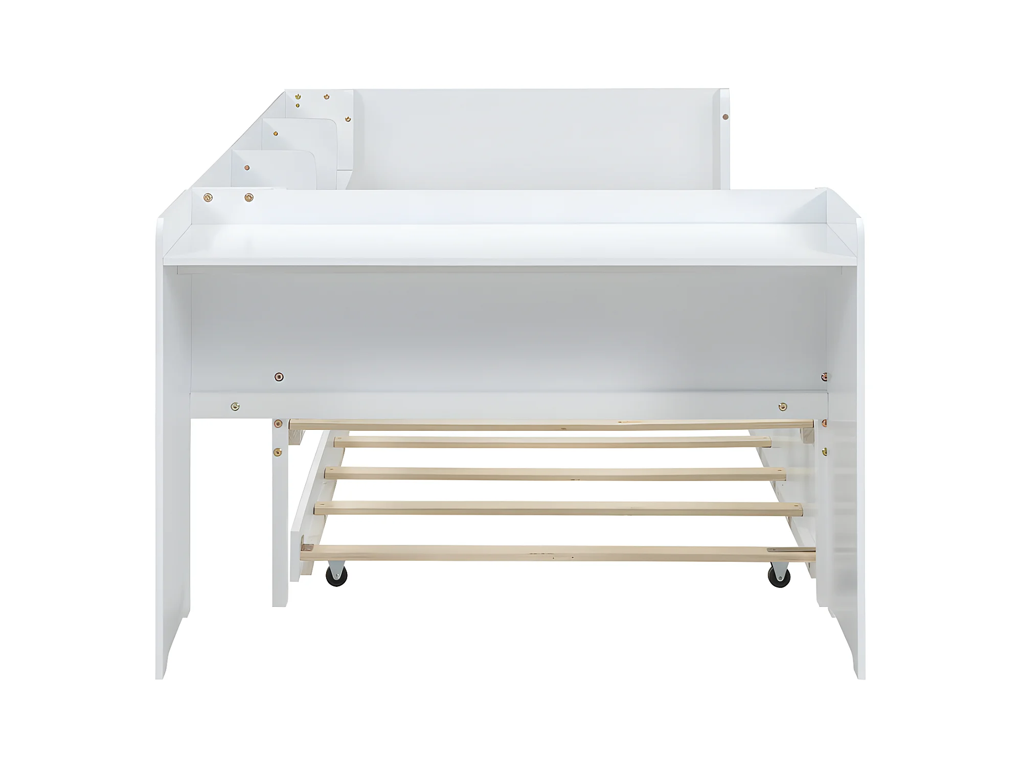 Einzelbett 90x200 cm mit Ausziehbett – mit Schreibtisch daneben – Weiß