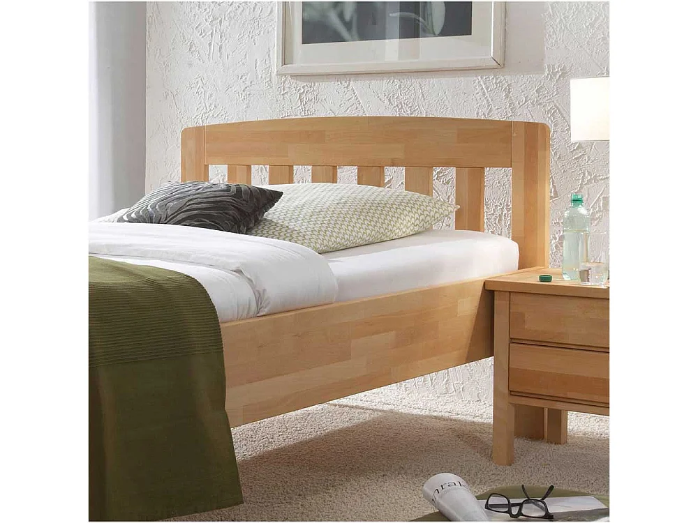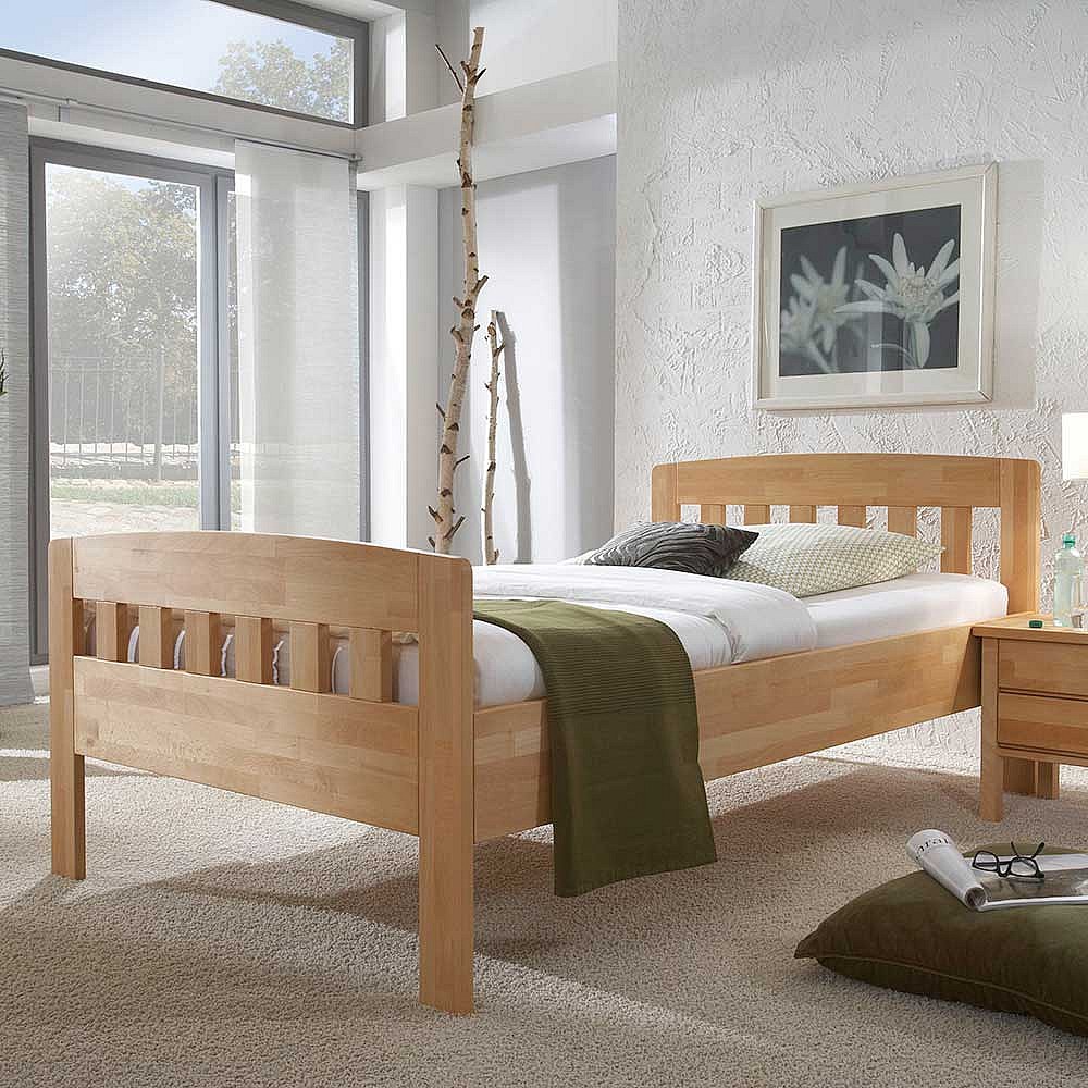 Einzelbett aus Kernbuche Massivholz mit Komforthöhe