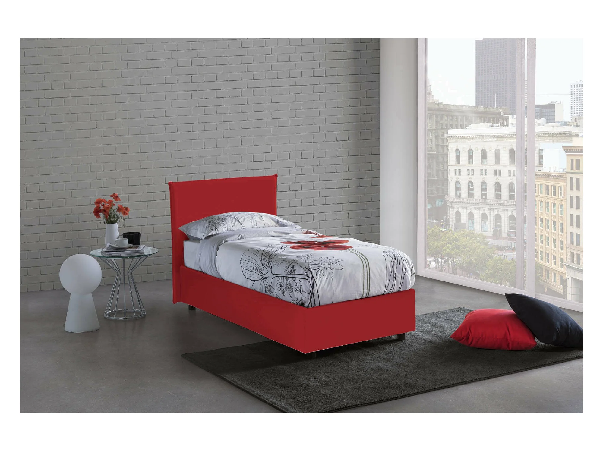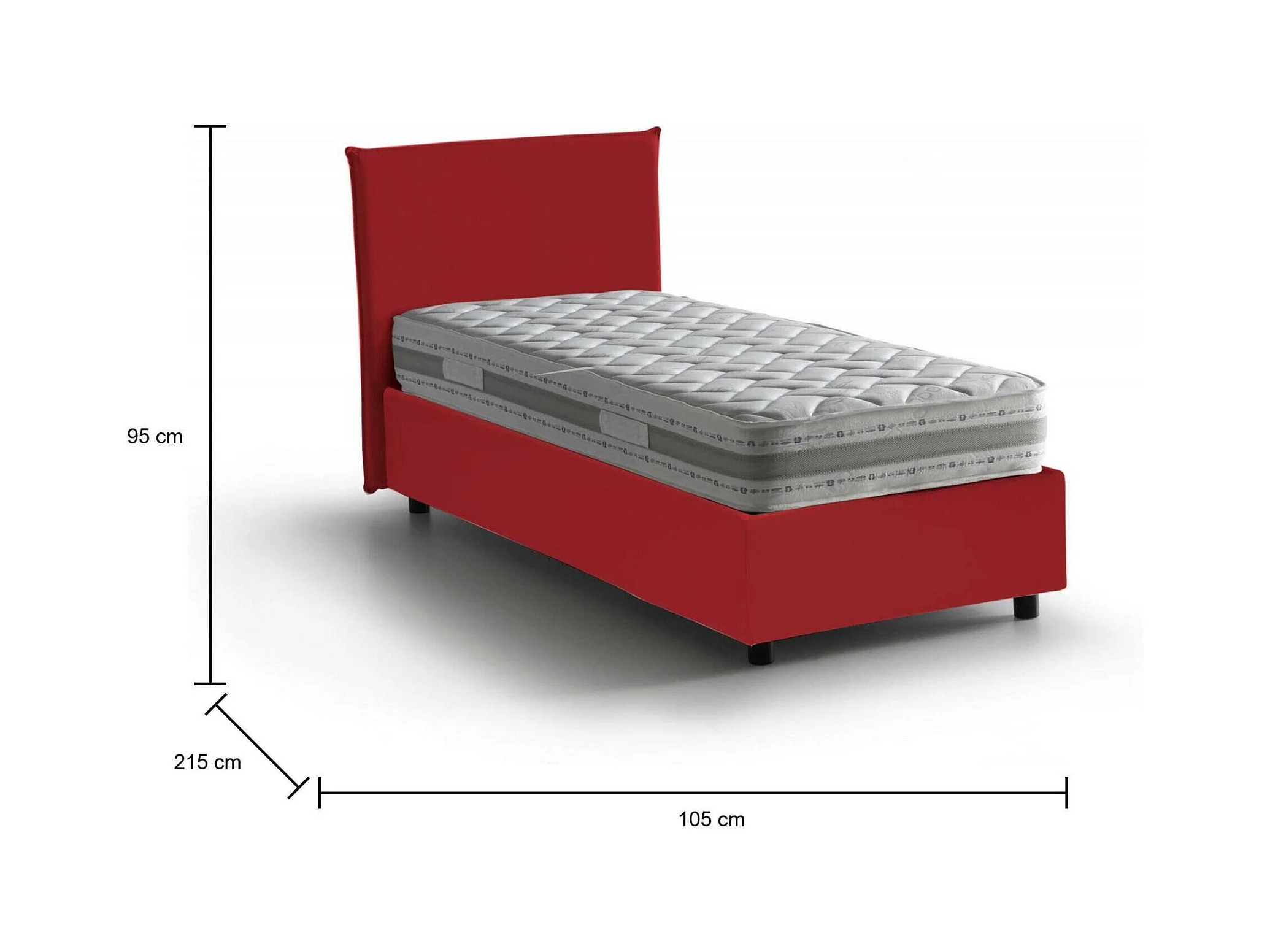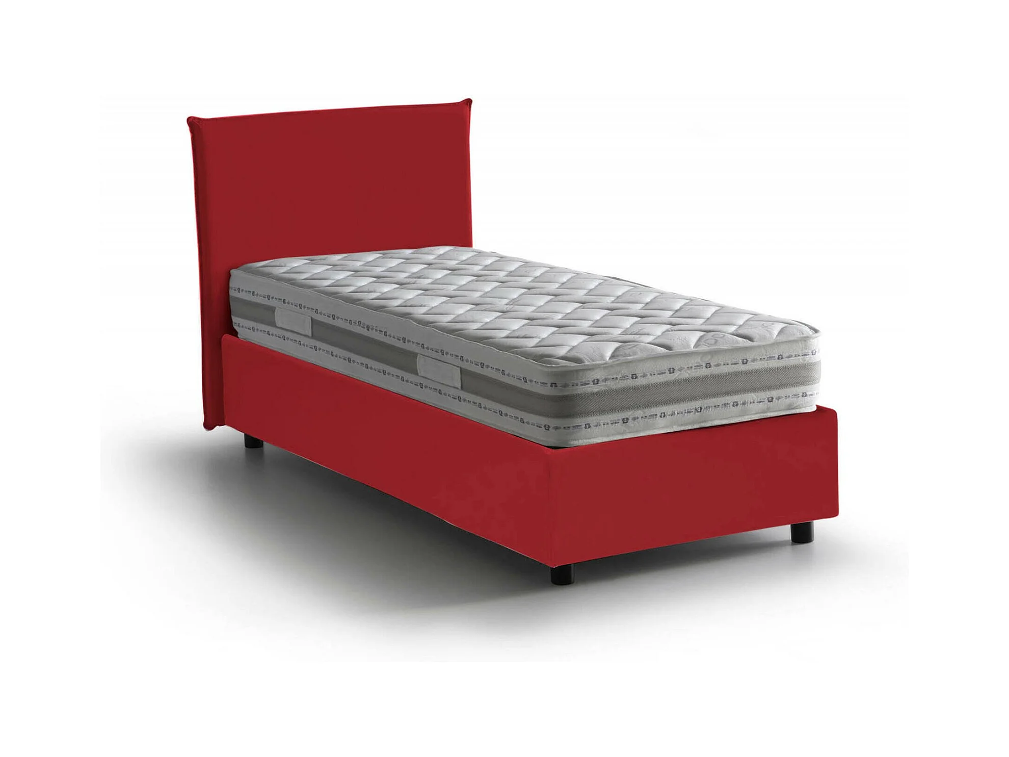 Einzelbett Claire, Bettkasten mit Stoffbezug, 100 % Made in Italy, Öffnung vorne, inklusive Matratze 90 x 200 cm, Rot