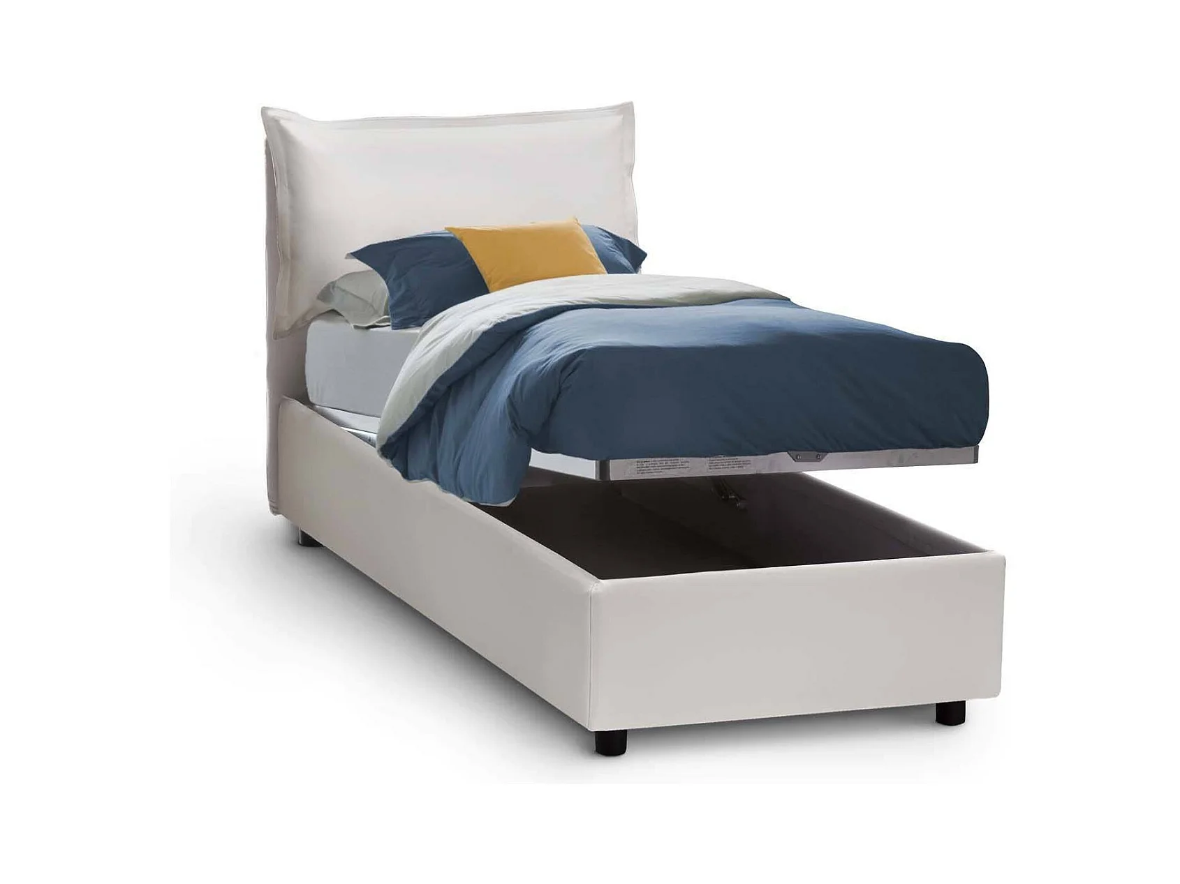 Einzelbett Cristina, Bettkasten mit Kunstlederbezug, 100 % Made in Italy, Öffnung vorne, geeignet für Matratzen 80 x 200 cm, Weiß