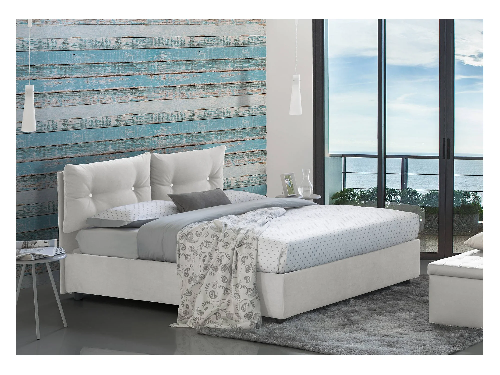 Einzelbett Daasba, Containerbett mit Stoffbespannung, 100% Made in Italy, Frontöffnung, inklusive Matratze 80x190 cm, Weiß