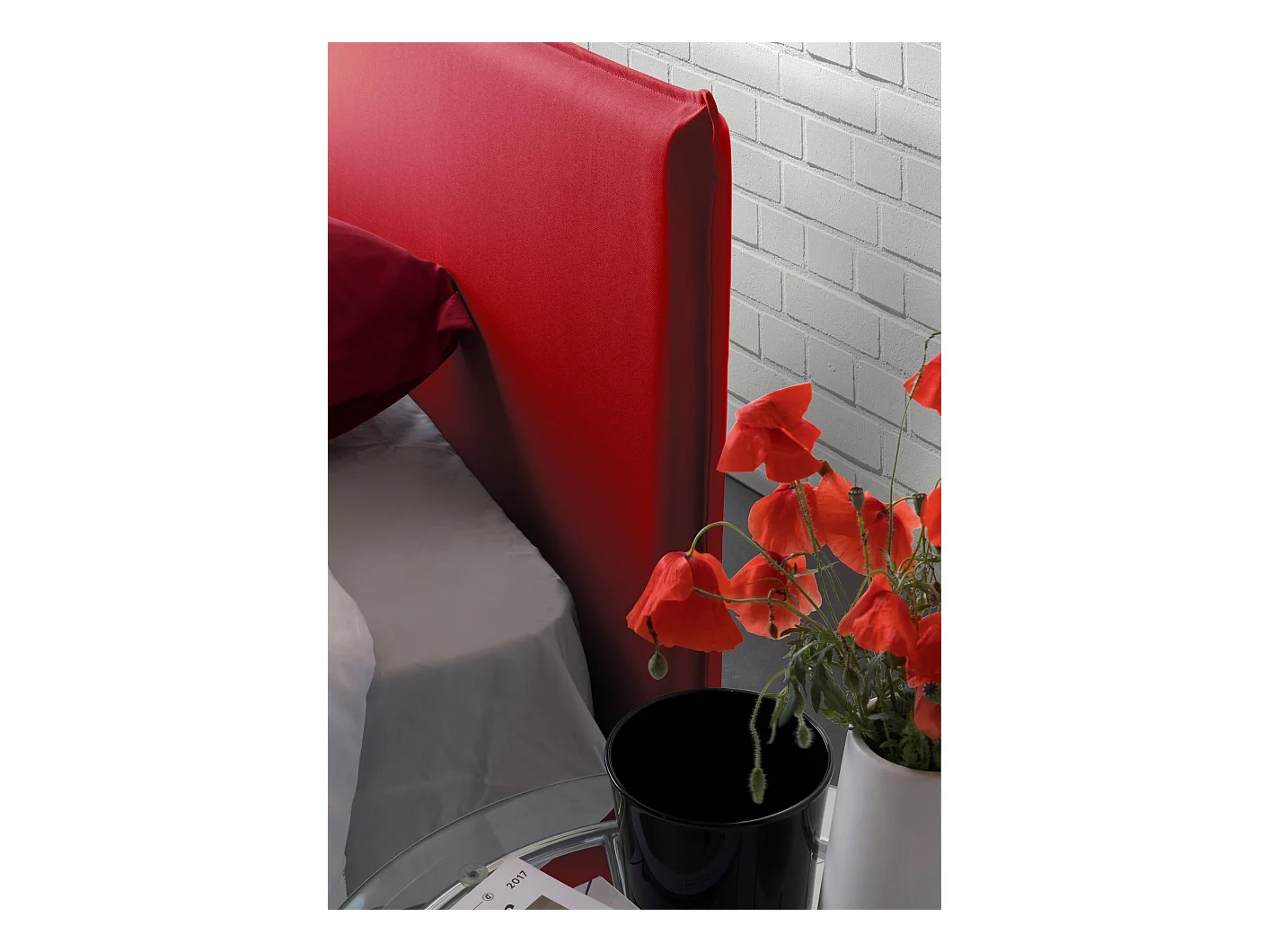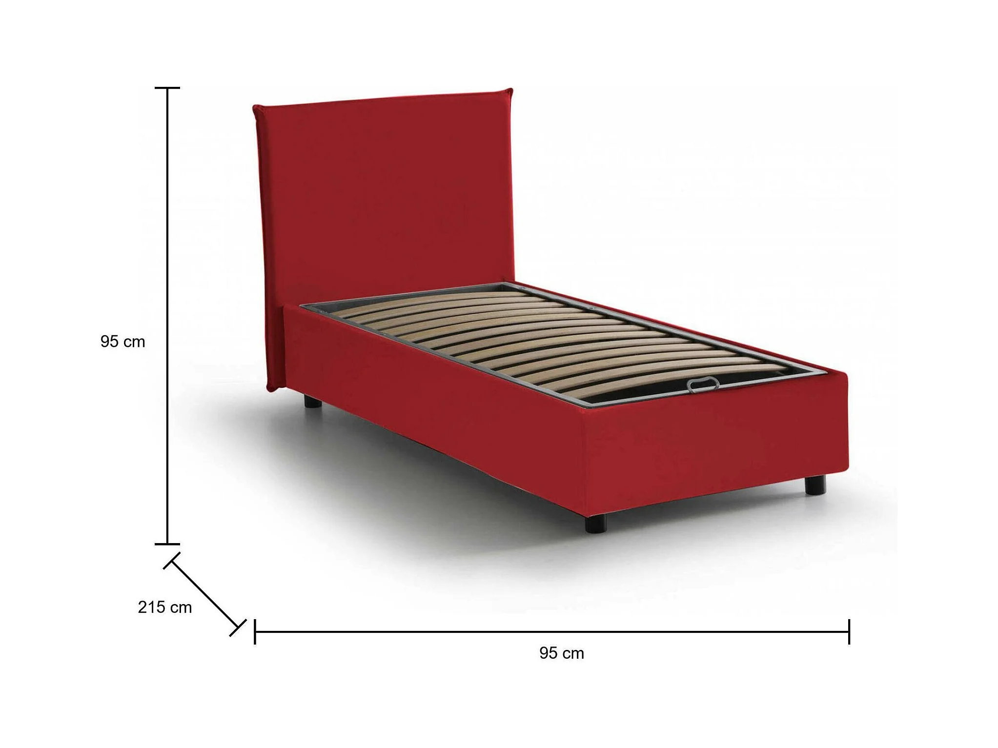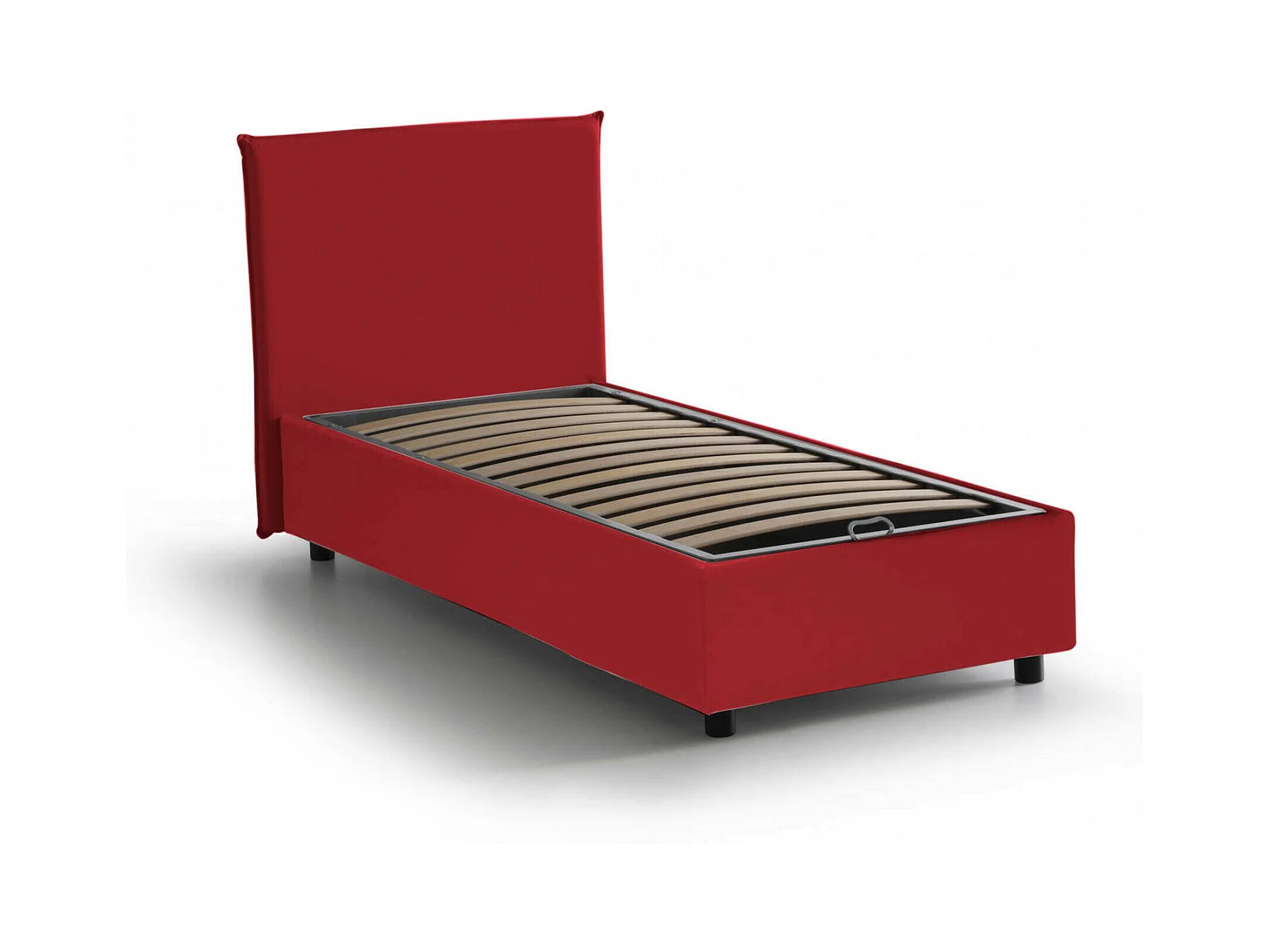 Einzelbett Dbacchi, Containerbett mit Stoffbespannung, 100% Made in Italy, Frontöffnung, passend für Matratze Cm 80x200, Rot