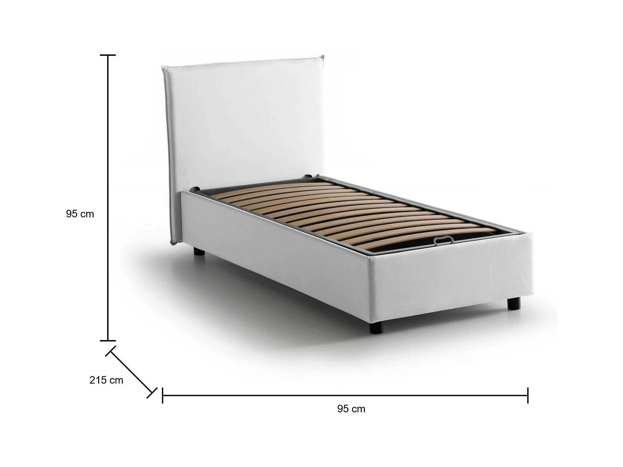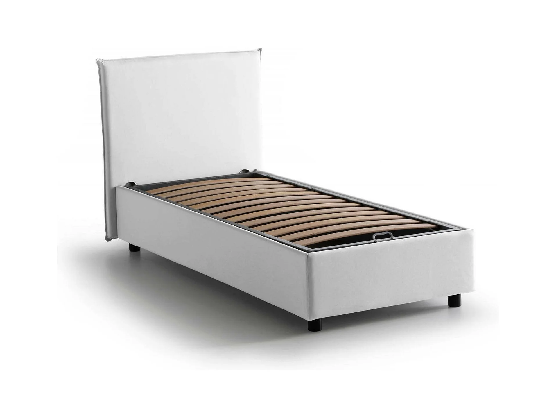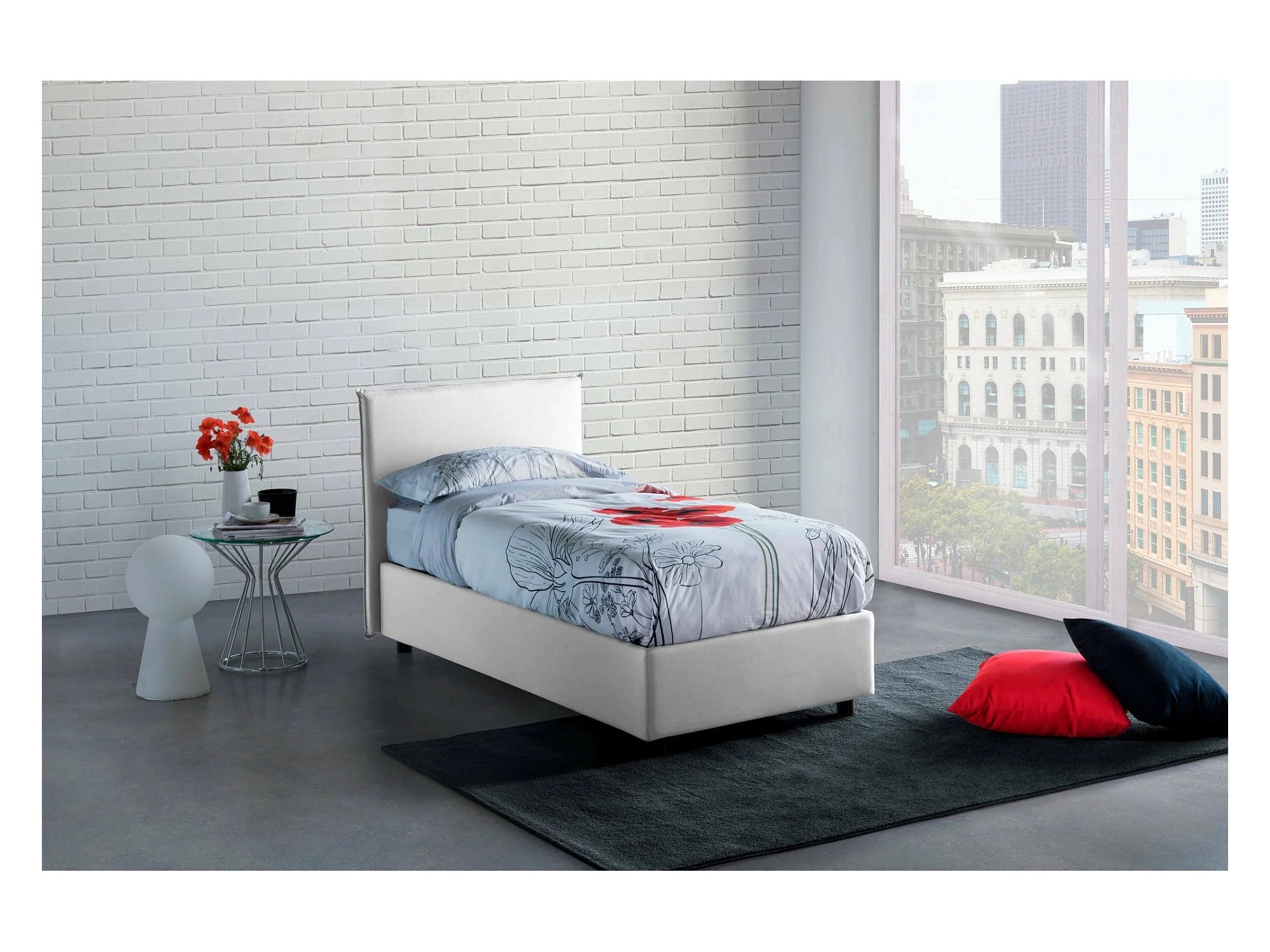 Einzelbett Dbacchi, Containerbett mit Stoffbespannung, 100% Made in Italy, Frontöffnung, passend für Matratze Cm 80x200, Weiß