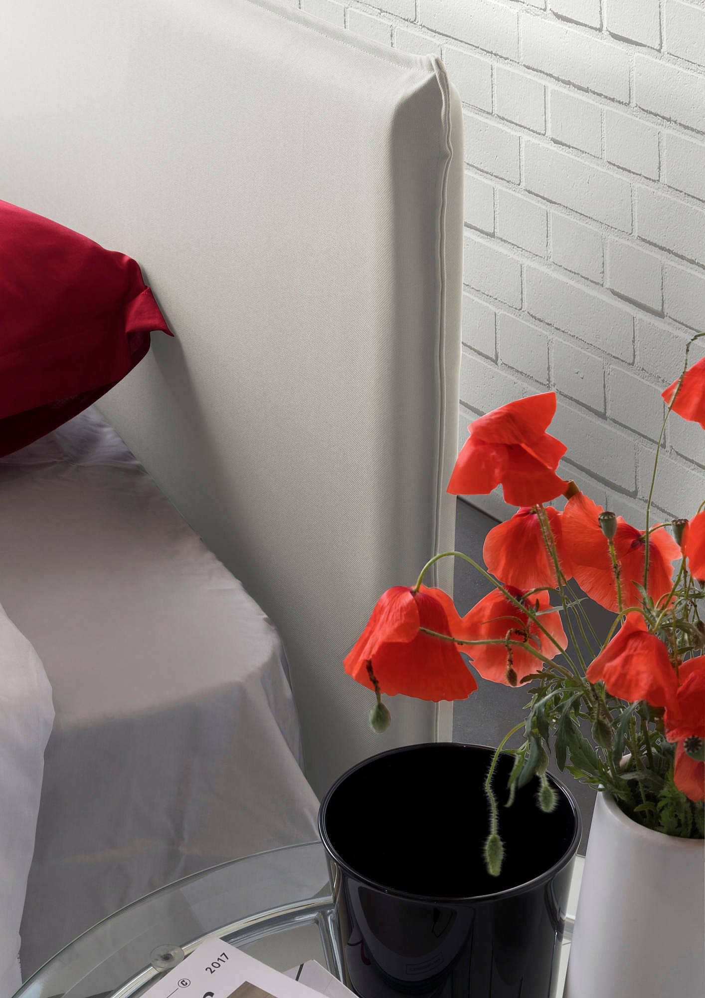Einzelbett Dbaldo, Containerbett mit Stoffbespannung, 100% Made in Italy, Frontöffnung, passend für Matratze Cm 90x190, Weiß