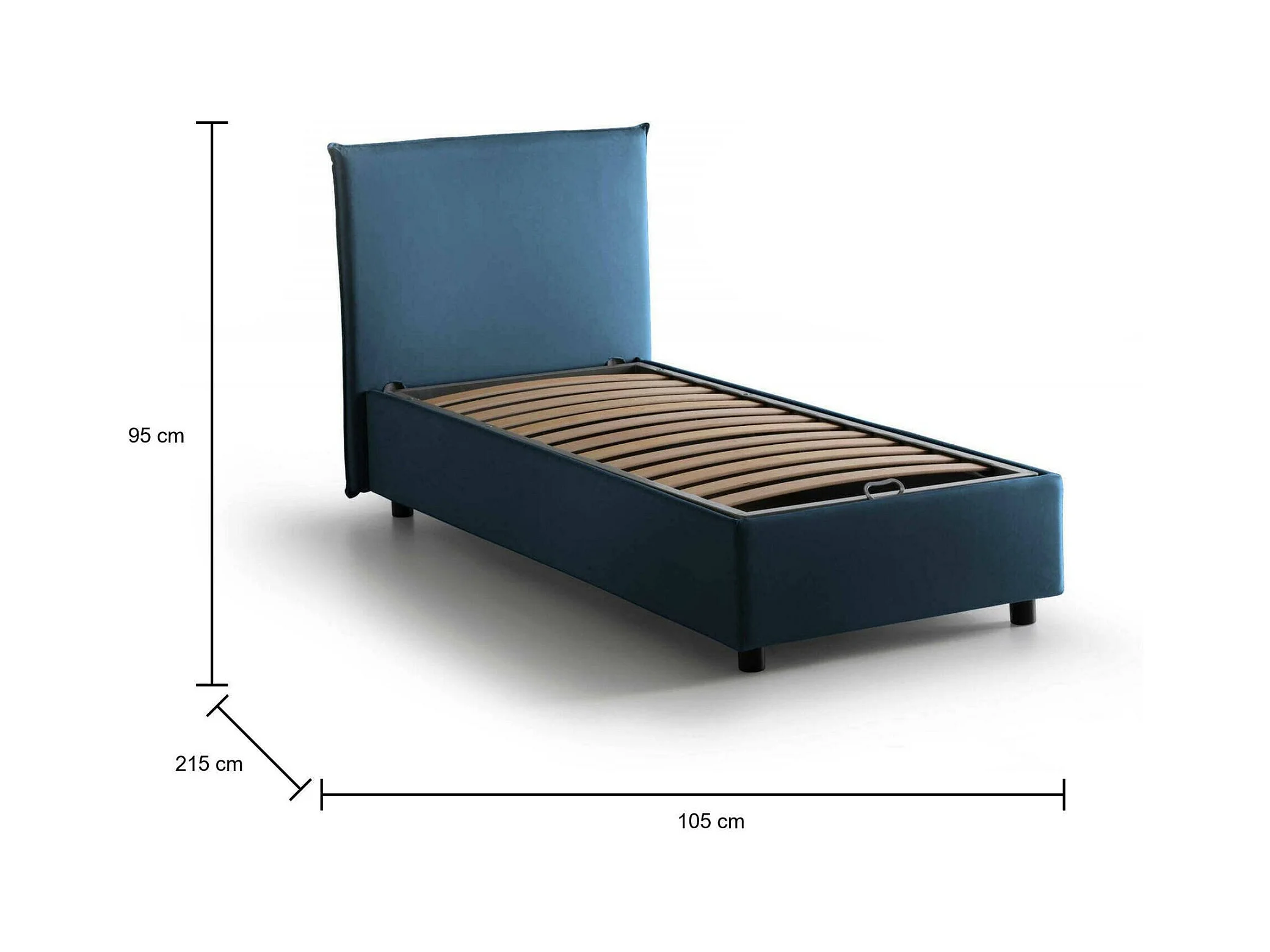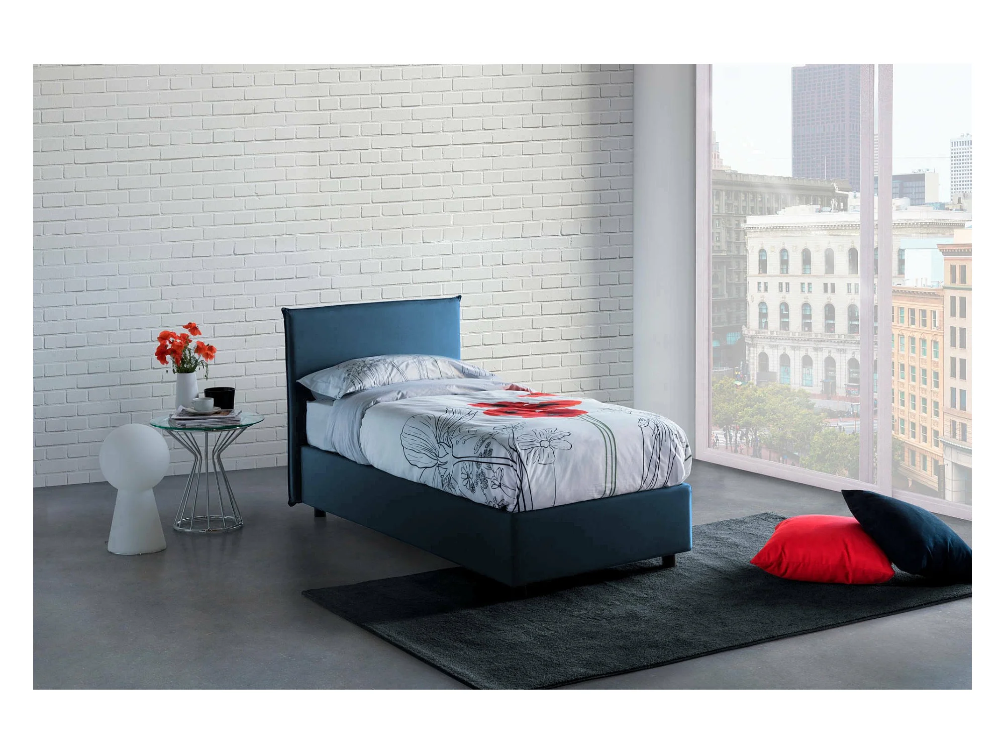 Einzelbett Dbasell, Containerbett mit Stoffbespannung, 100% Made in Italy, Frontöffnung, passend für Matratze Cm 90x200, Blau
