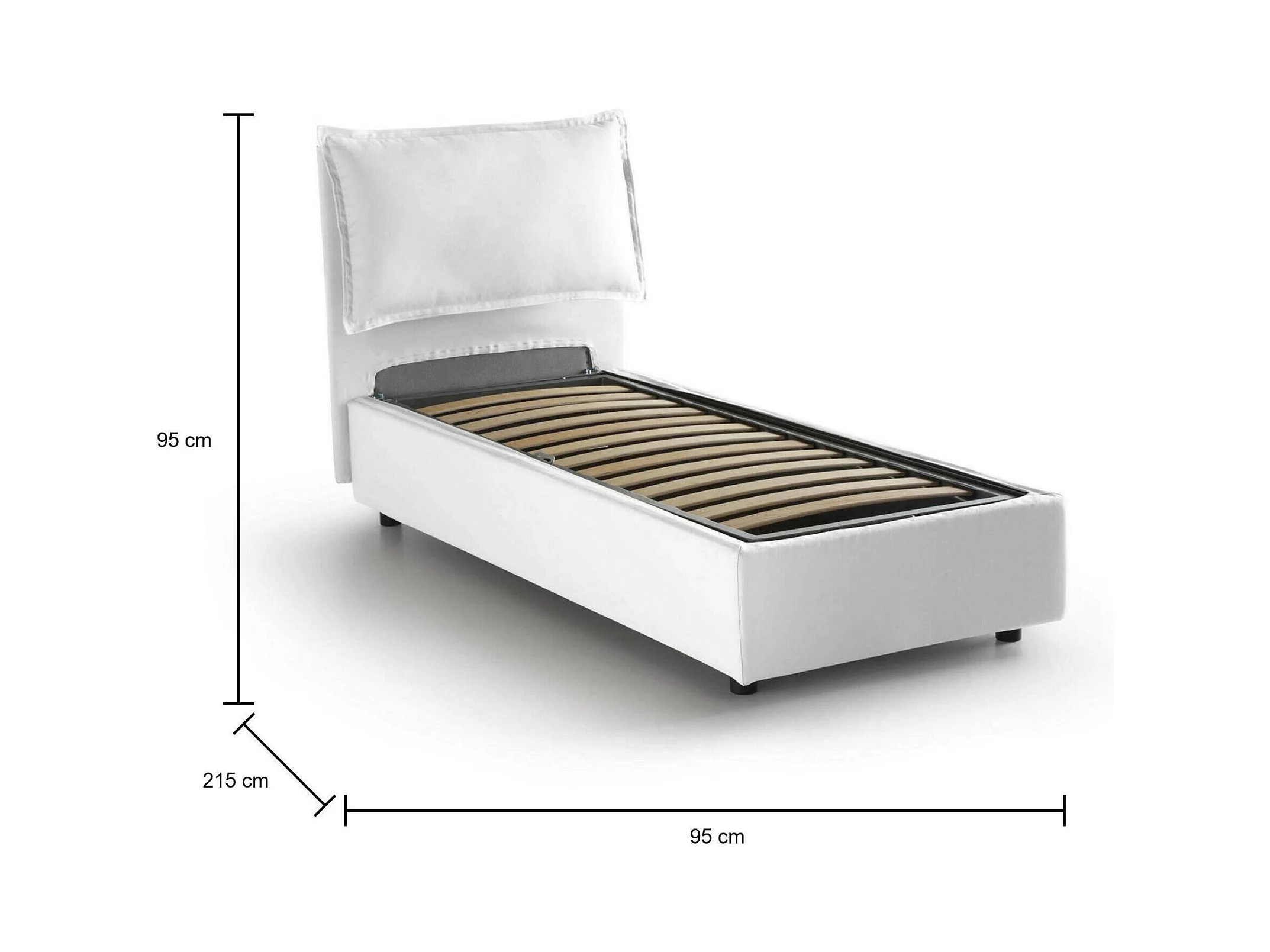 Einzelbett Ddimari, Containerbett mit Stoffbespannung, 100% Made in Italy, Frontöffnung, passend für Matratze 80x200 cm, Weiß