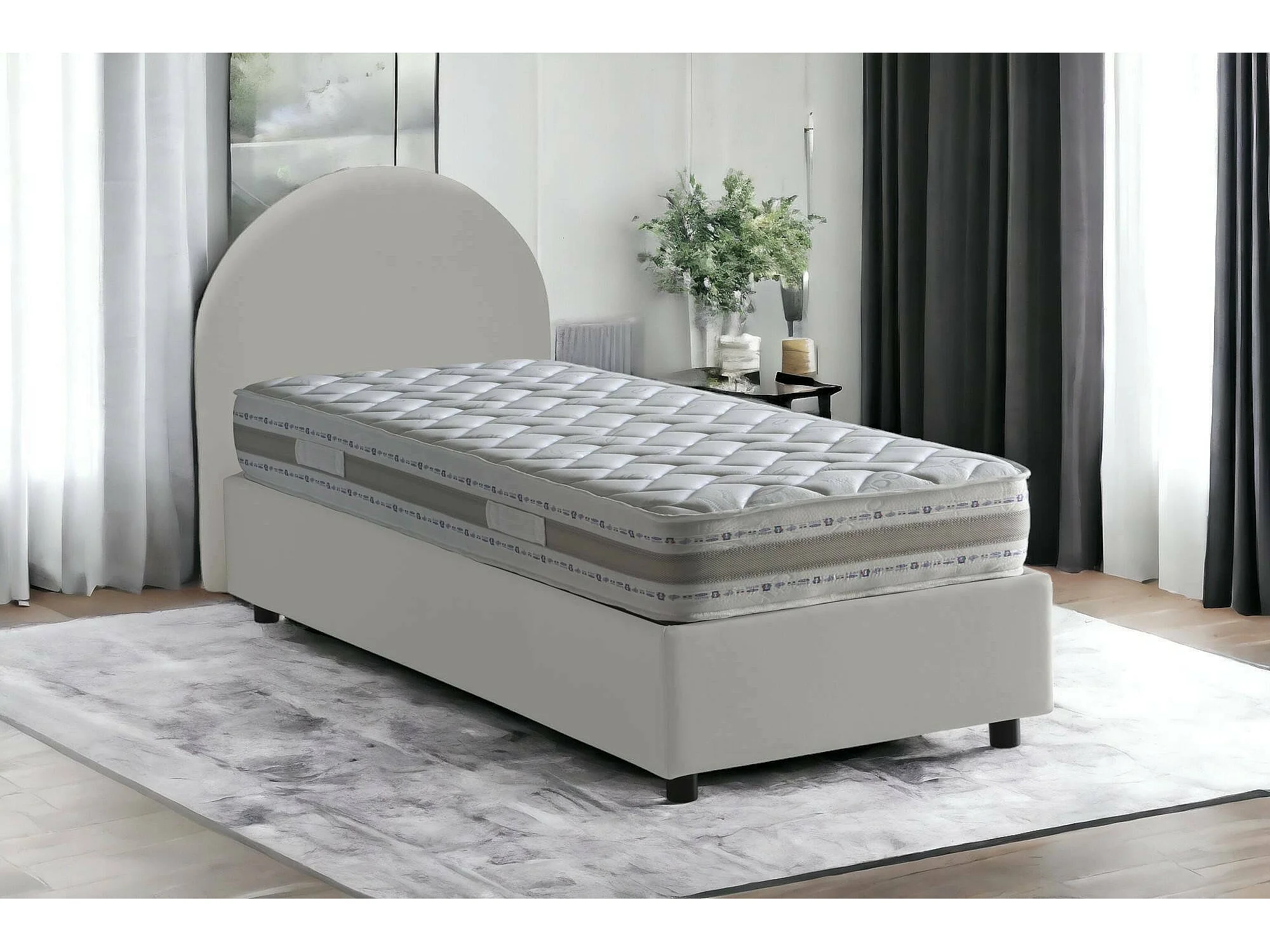 Einzelbett Ddurs, Containerbett mit Kunstlederbezug, 100% Made in Italy, Seitliche Öffnung, passend für Matratze 80x190 cm, Weiß