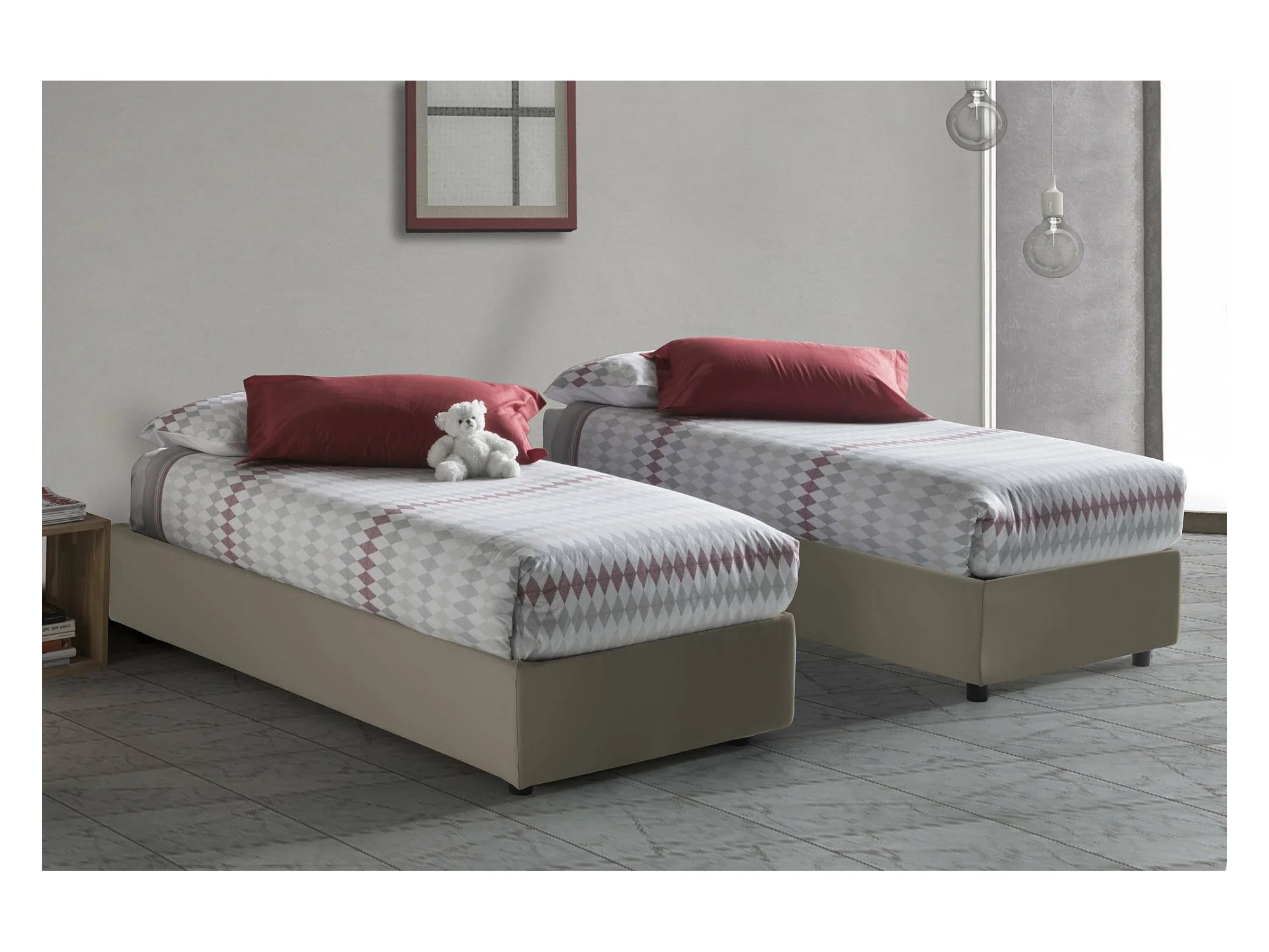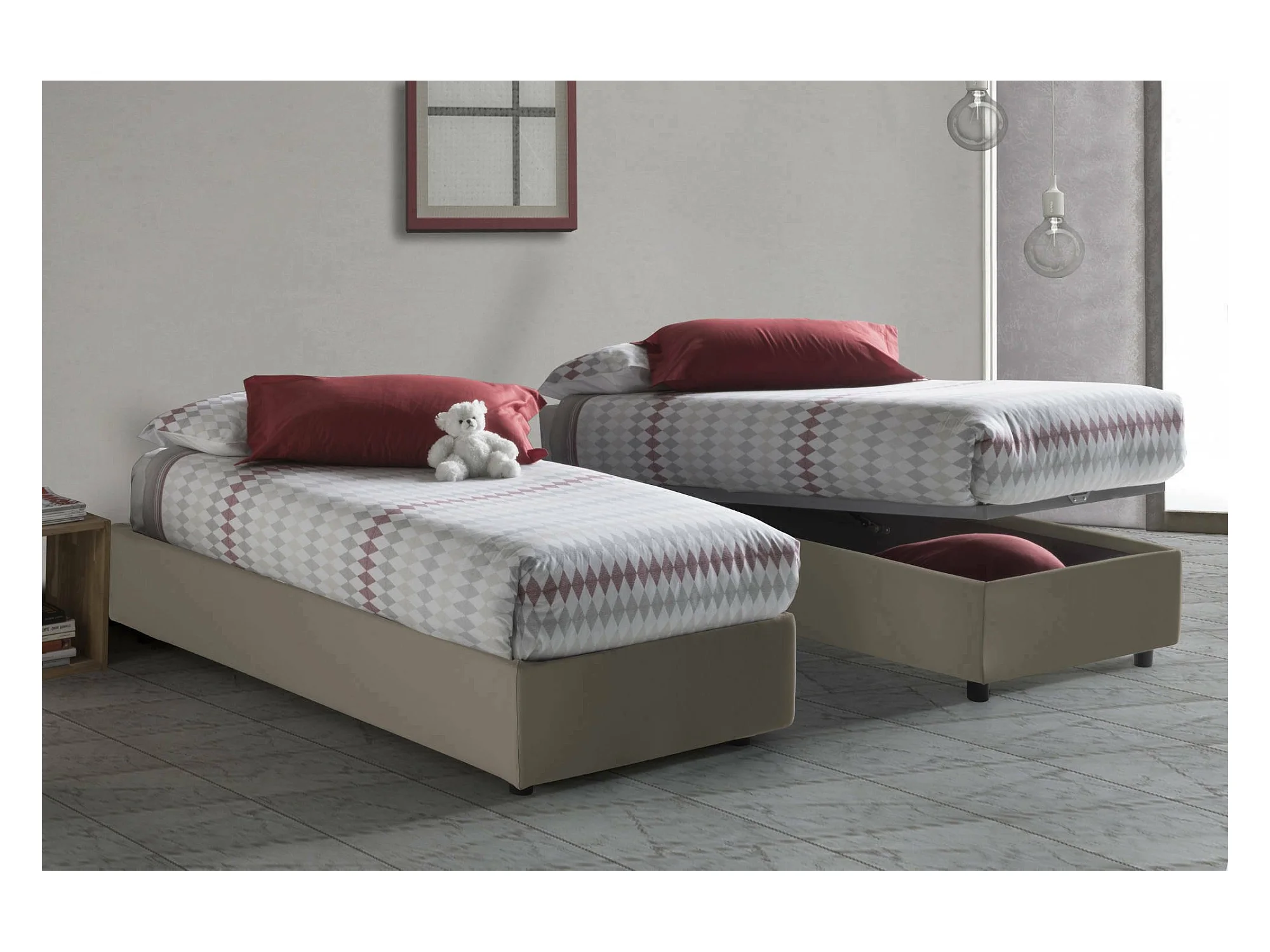 Einzelbett Dmecozz, Containerbett mit Kunstlederbezug, 100% Made in Italy, Frontöffnung, passend für Matratze Cm 90x190, Turteltaube