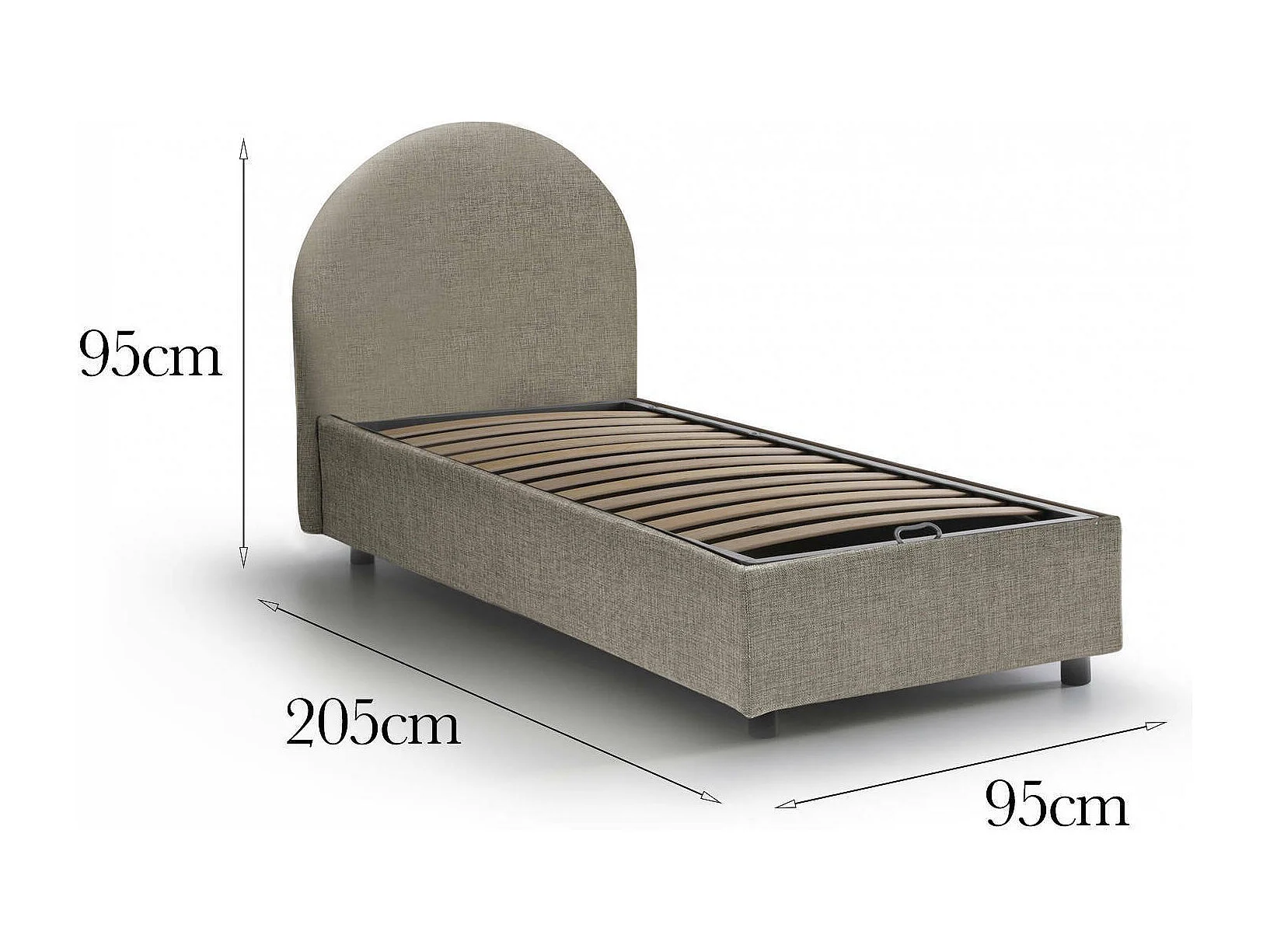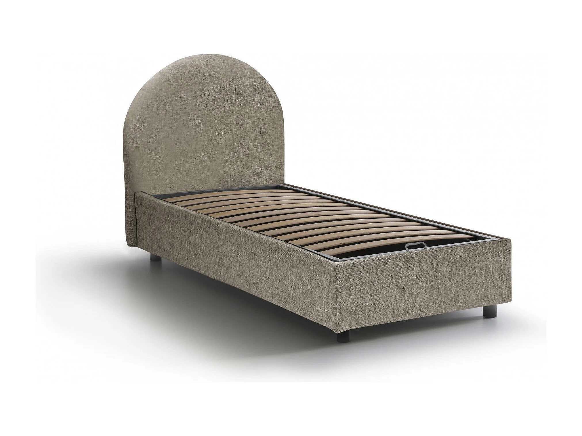 Einzelbett Emma, ??Bettkasten mit Stoffbezug, 100 % Made in Italy, Öffnung vorne, inklusive Matratze 80x190 cm, Taupe