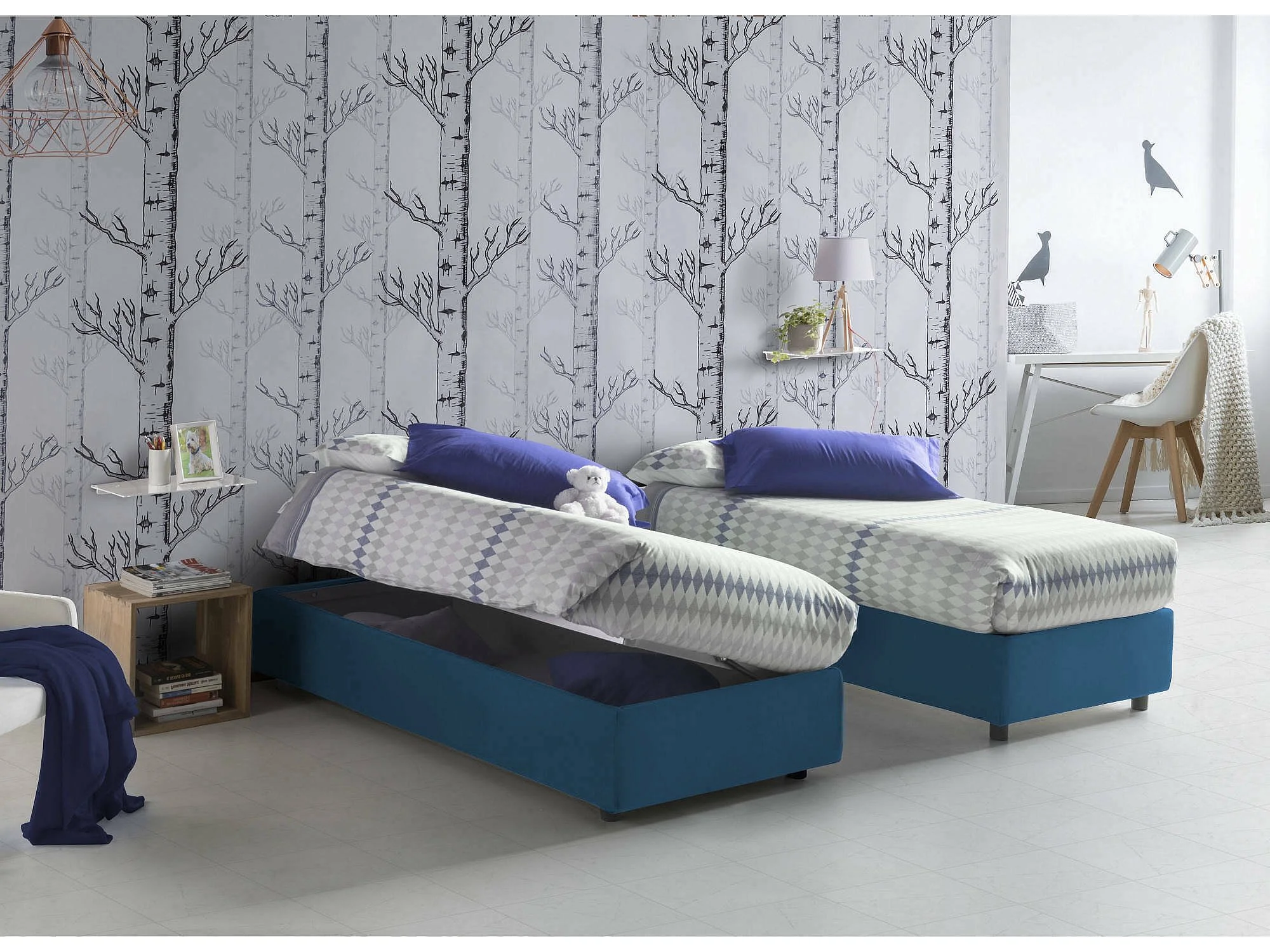 Einzelbett Melissa, Bettkasten mit Stoffbezug, 100 % Made in Italy, seitliche Öffnung, geeignet für Matratze 80x190 cm, Blau