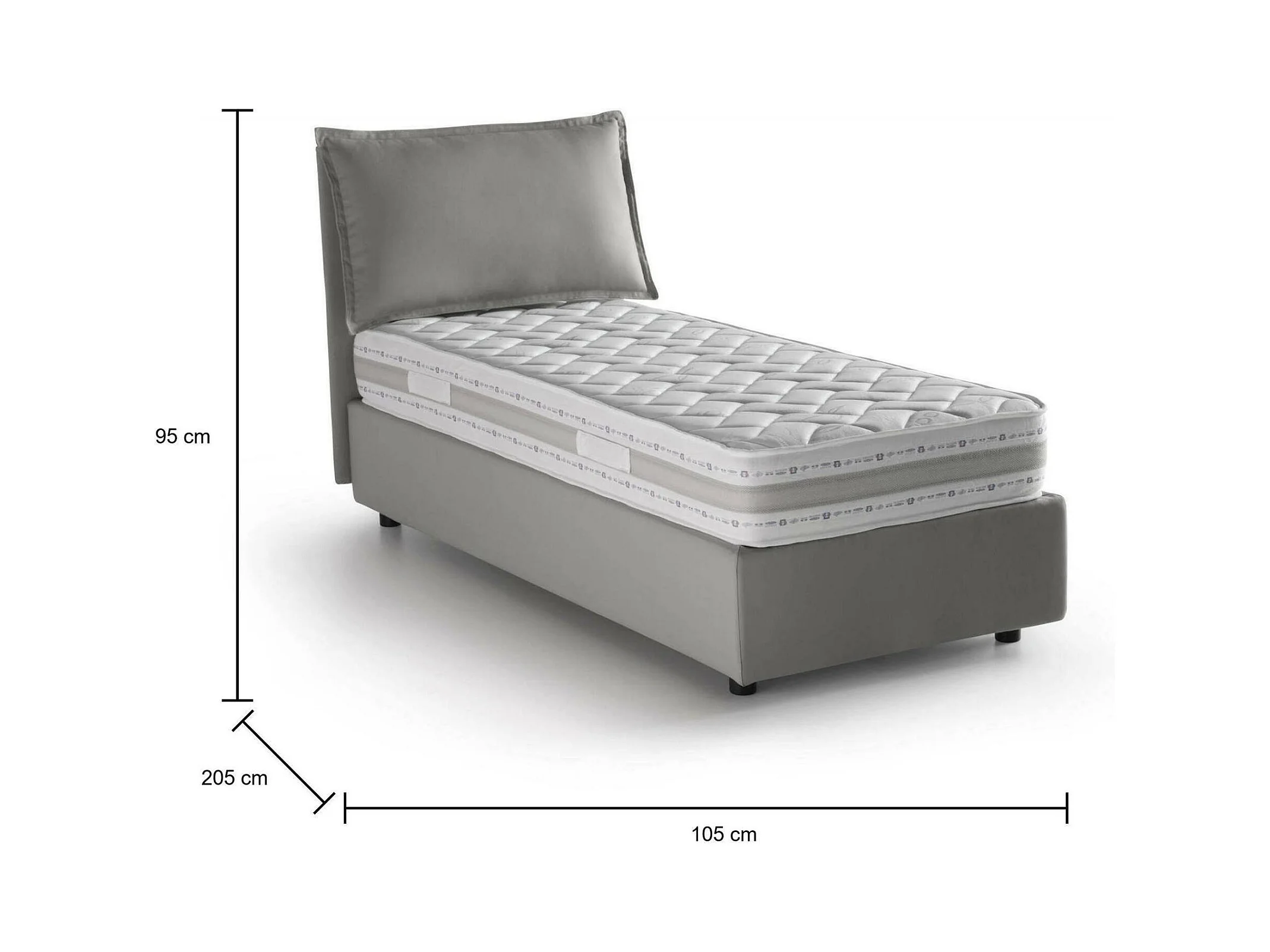 Einzelbett Penelope, Bettkasten mit Stoffbezug, 100 % Made in Italy, Öffnung vorne, inklusive Matratze 90 x 190 cm, Grau