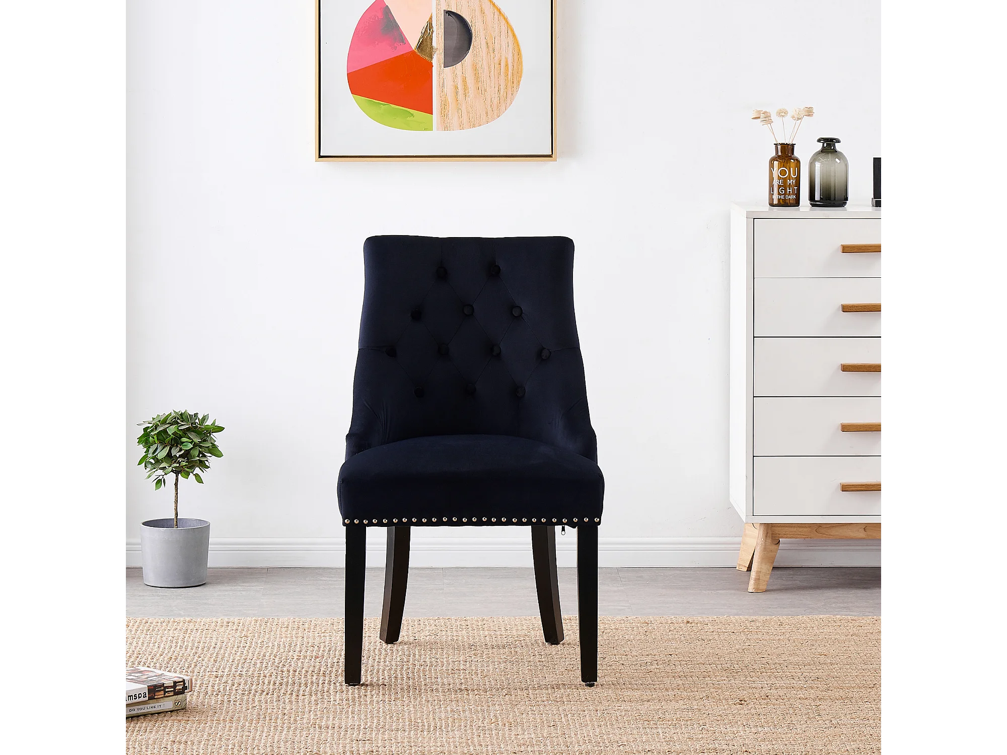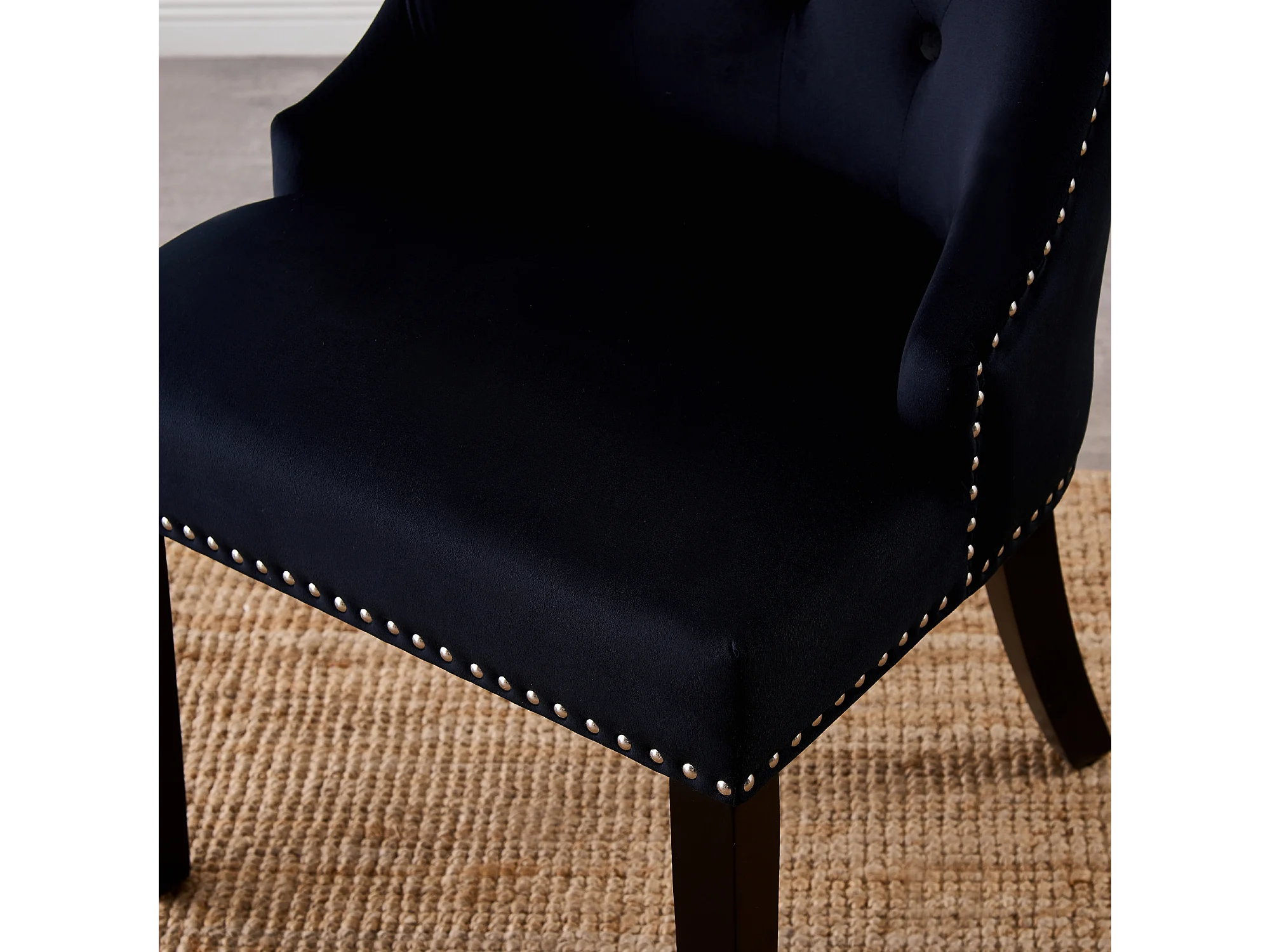 Einzelner Windsor-Esszimmerstuhl – Plüsch-Samtpolsterung und stabile Beine aus Massivholz – perfekt für Ihr Esszimmer und Wohnzimmer – Schwarz