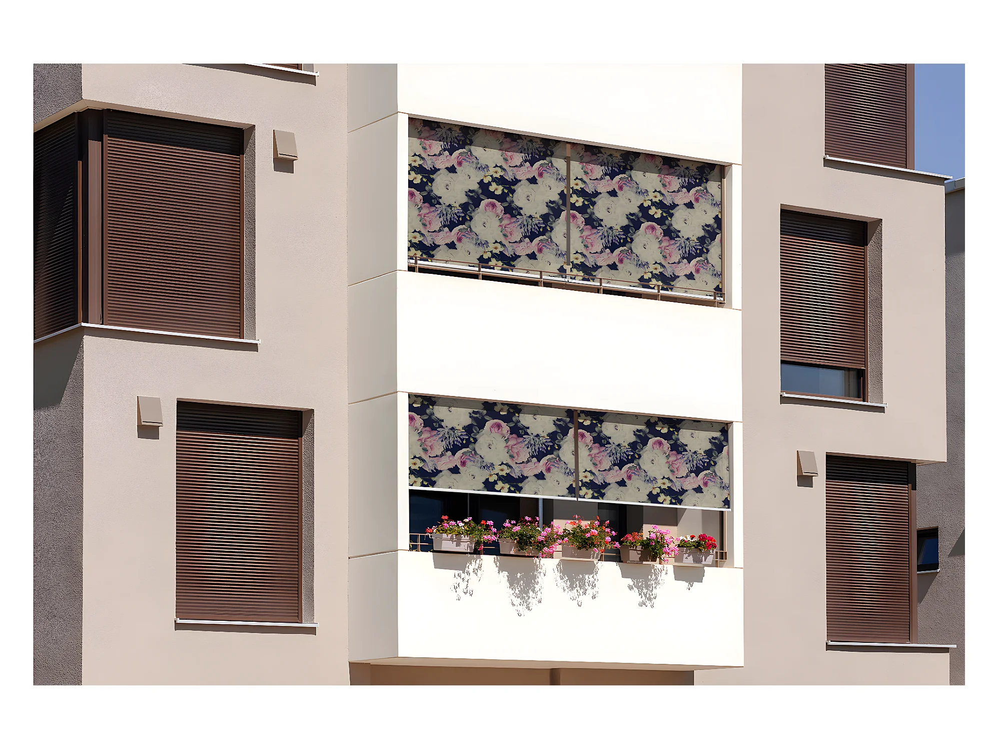 Einzelnes Außenrollo - 40x180 cm - Pastellblumen Balkonvorhang, Balkonrollos, Sonnenschutzvorhang