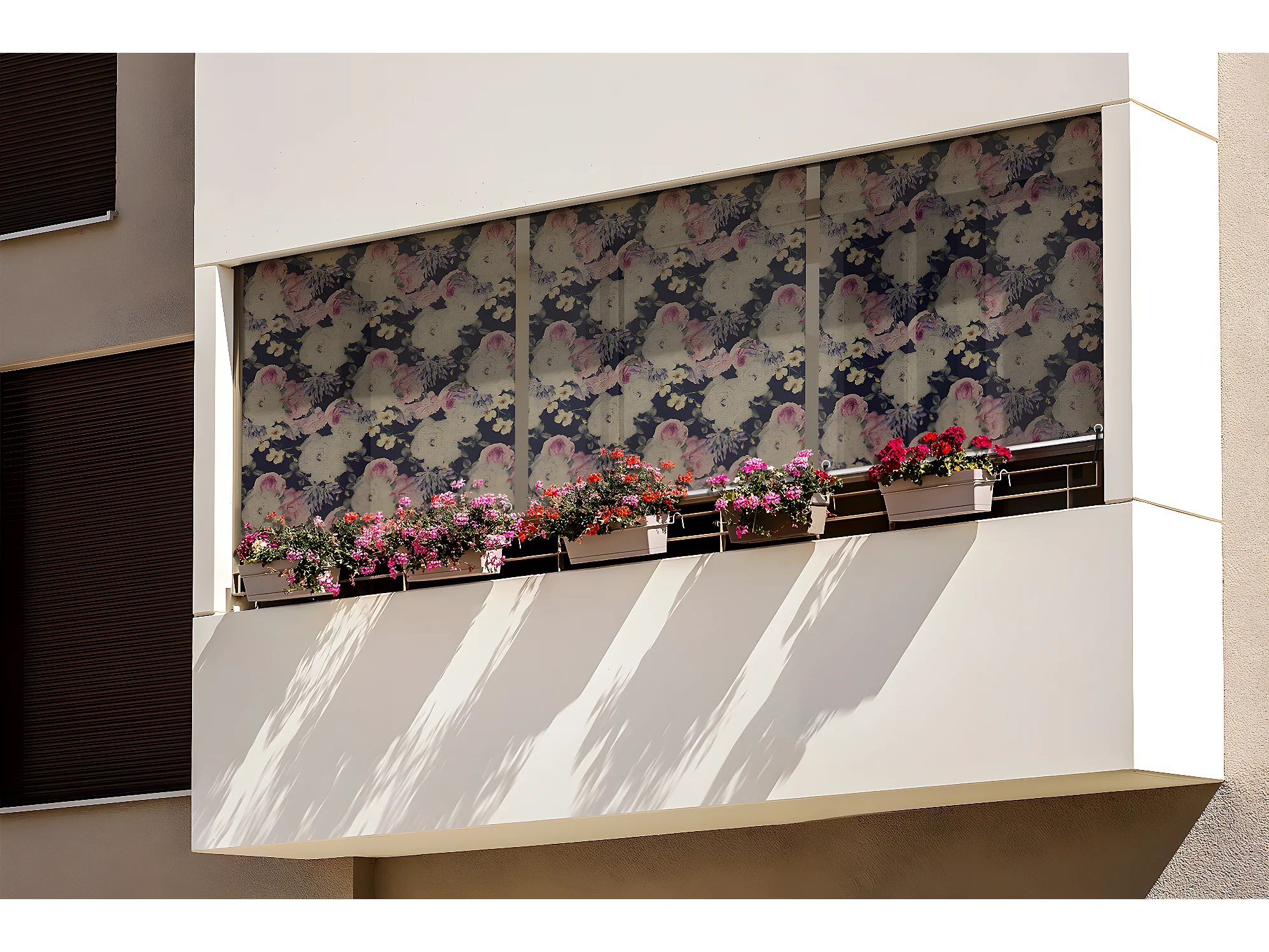 Einzelnes Außenrollo - 60x180 cm - Pastellblumen Balkonvorhang, Balkonrollos, Sonnenschutzvorhang