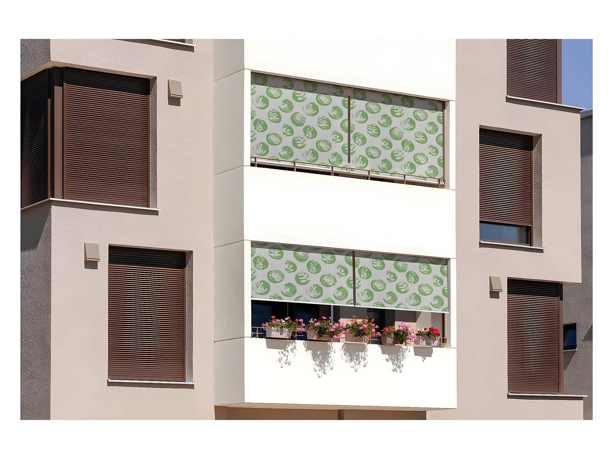 Einzigartiges Rollo für den Außenbereich – 100 x 180 cm – Blätter in grünen Kreisen. Balkonvorhang, Balkonjalousien, Sonnenschutzvorhang