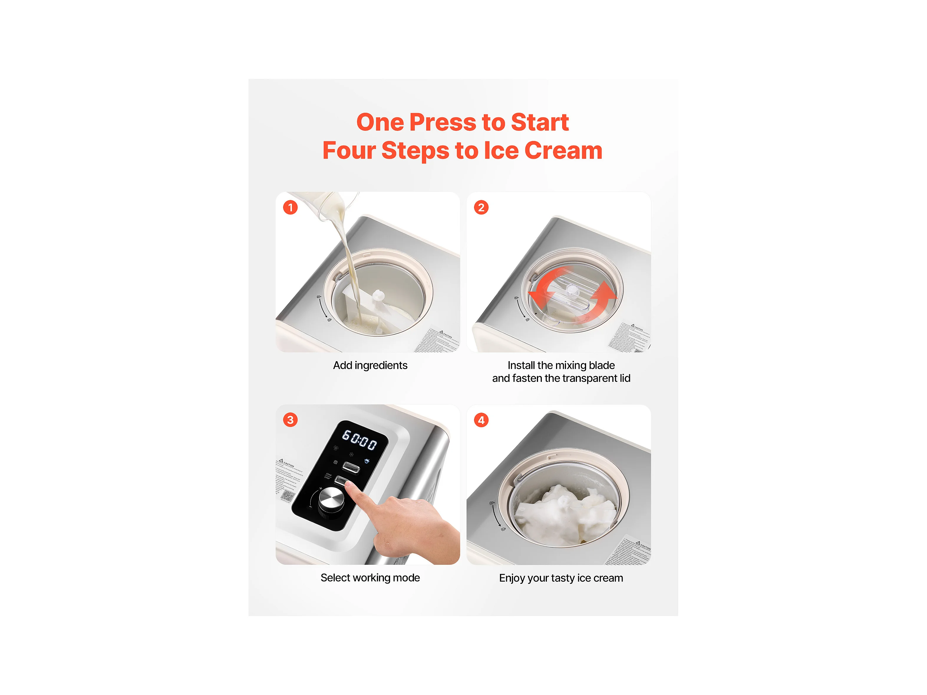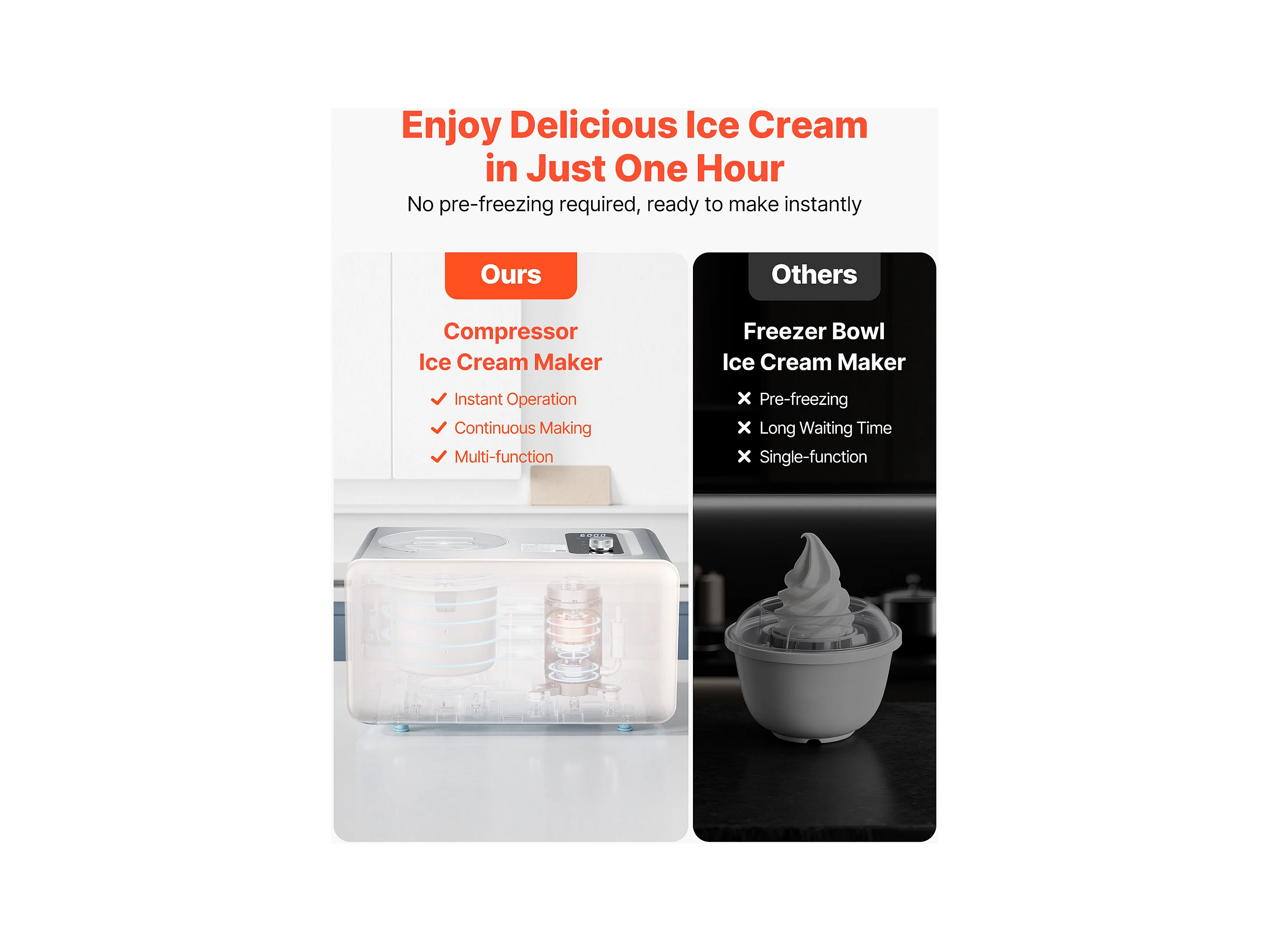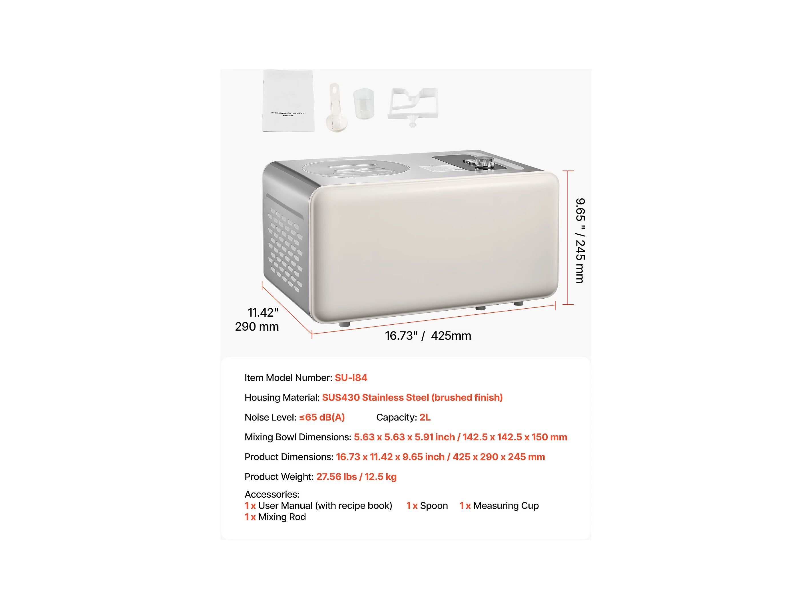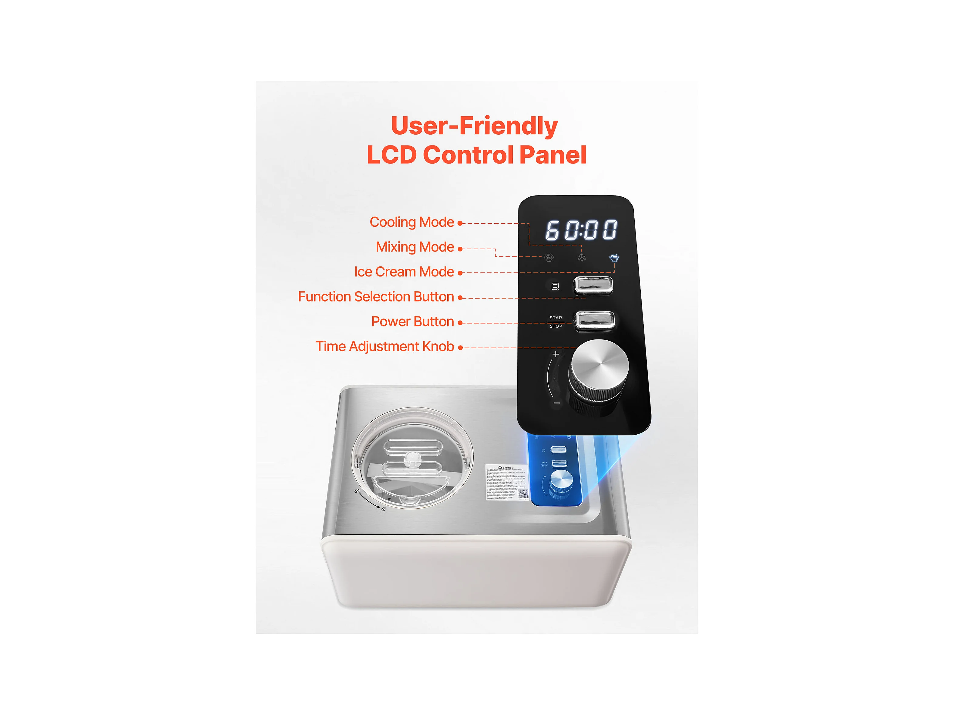 Eismaschine SucceBuy Automatisch Kapazität 2 L, Eisturbine für Sorbet mit Integriertem Kompressor, Elektrische Eismaschine ohne Vorgefrieren