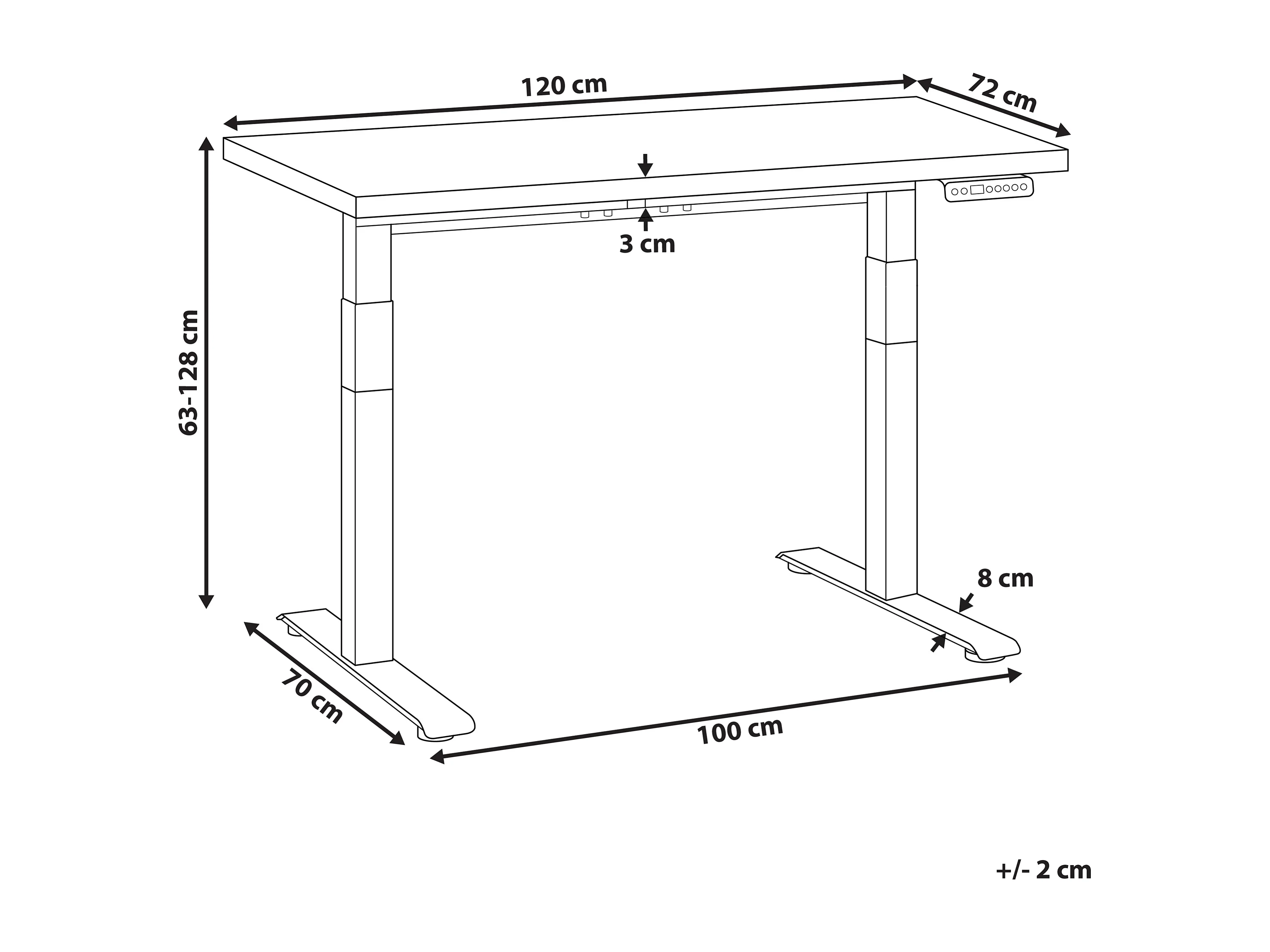 Elektrisch höhenverstellbarer Schreibtisch USB schwarz 120x72 cm DESTINES
