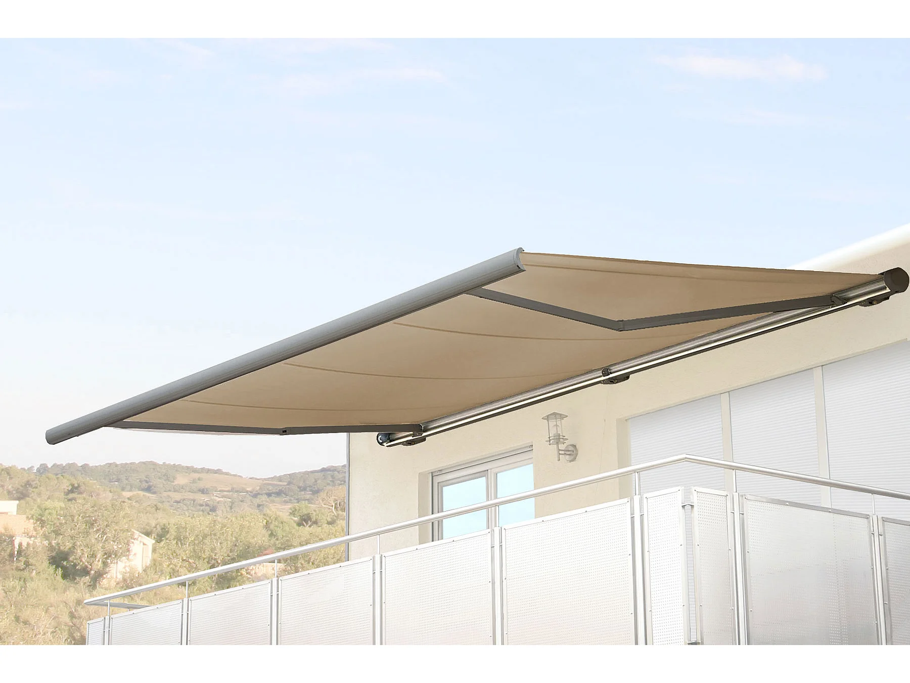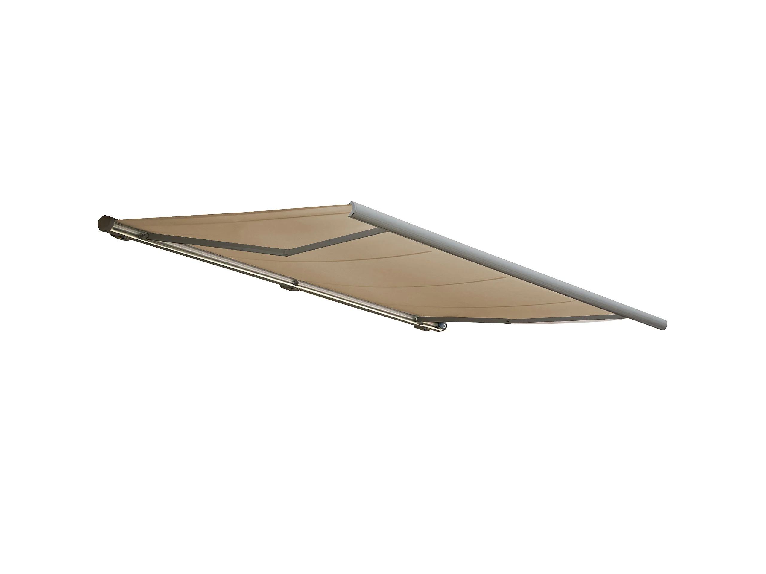 Elektrische Kassettenmarkise H122, Polyester Creme, Rahmen grau