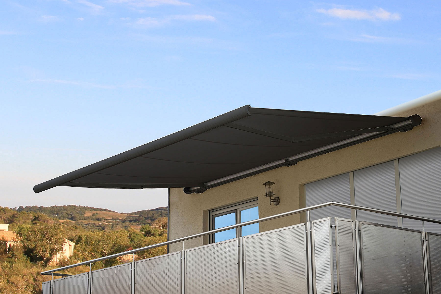 Elektrische Kassettenmarkise H124, Acryl anthrazit, Rahmen anthrazit
