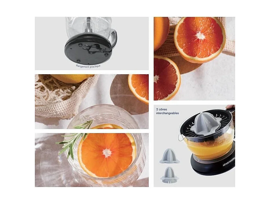Elektrische Zitruspresse Arthur Martin AMPA07 700 ml mit 2 Kegeln und Ausgießer, 40W, spülmaschinengeeignete Teile