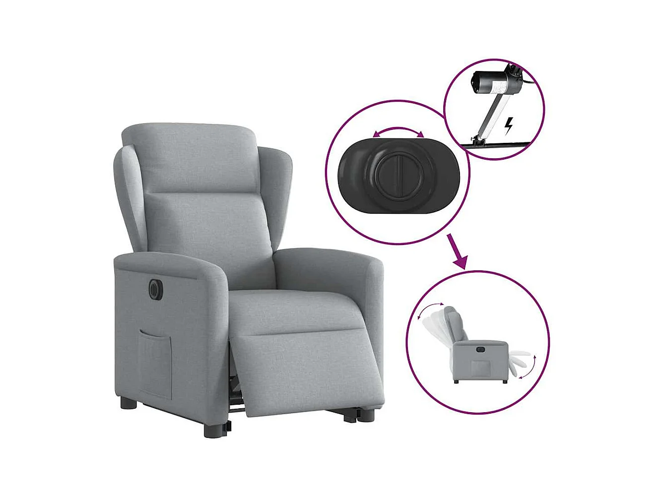 Elektrischer Liegesessel aus hellgrauem Stoff