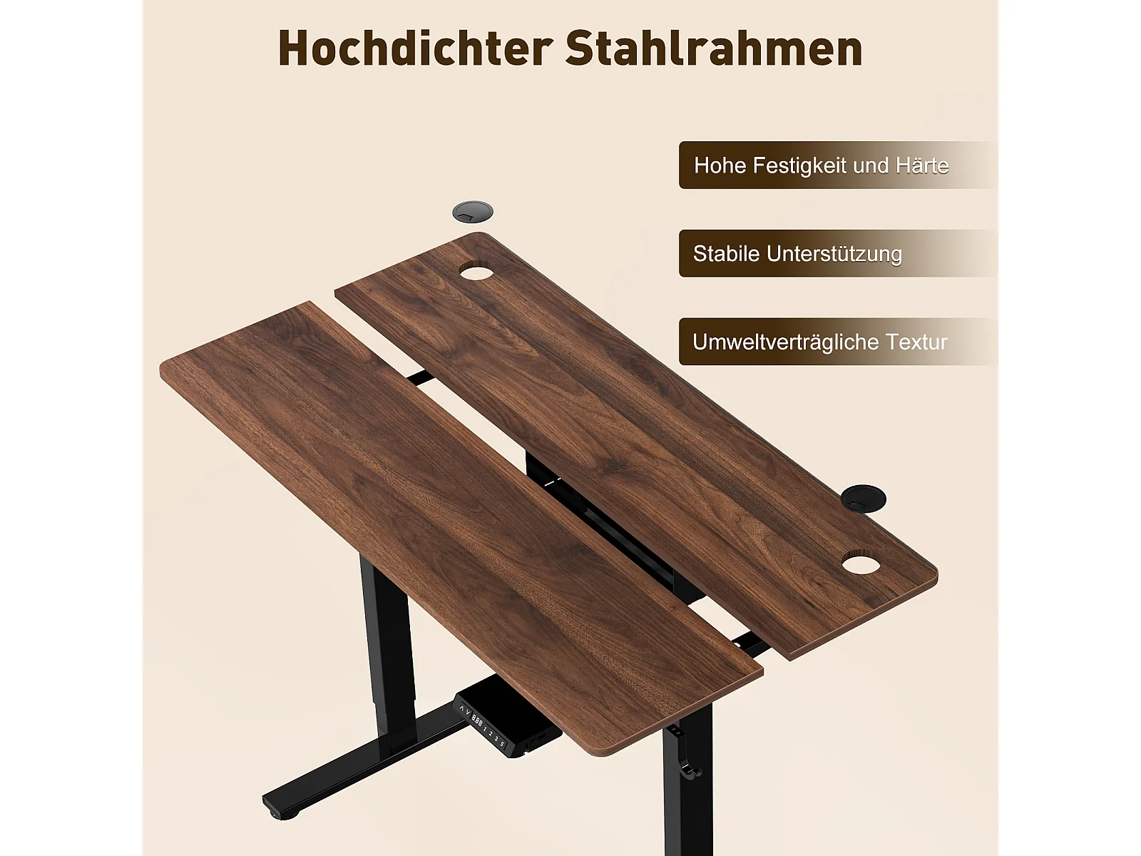 Elektrischer Schreibtisch 120x60 cm – Höhenverstellbar mit Memory & Kollisionsschutz – USB-A & Typ-C – Nussbaum-Optik