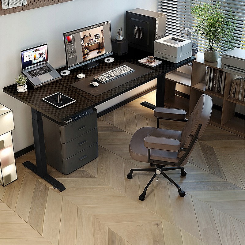 Elektrischer Steh-Sitz-Schreibtisch, schwarz, 140 cm, höhenverstellbar von 72 bis 118 cm LOFT