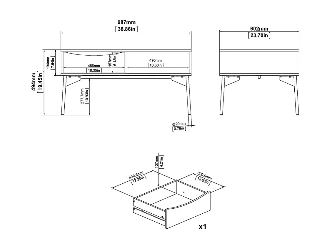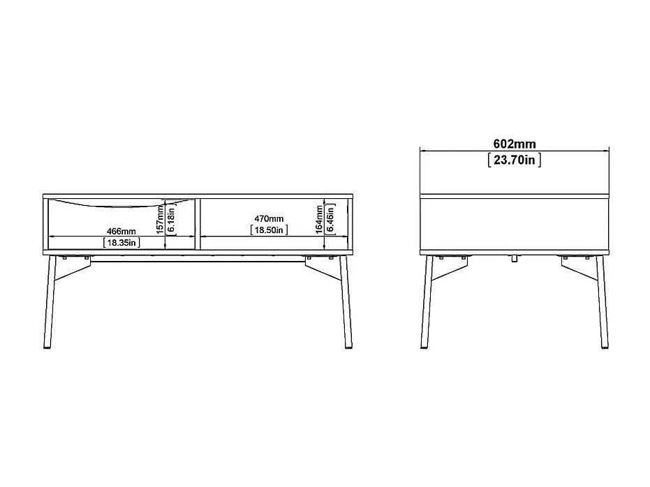 Elly Couchtisch 1 Schublade, 3 Einlegeböden mattweiß, grau.