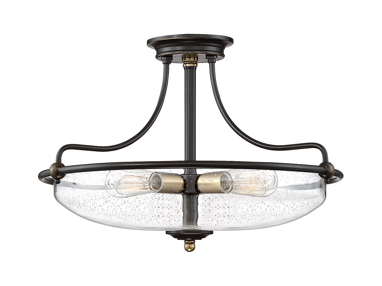 Elstead Quoizel Griffin Bowl Semi Flush Deckenleuchte Palladio-Bronze mit Akzenten aus verwittertem Messing