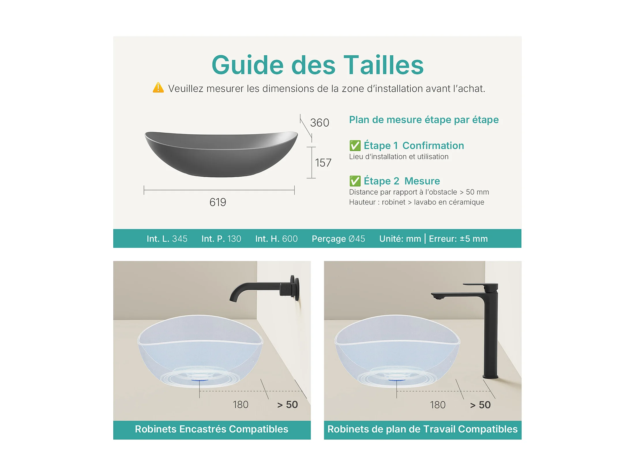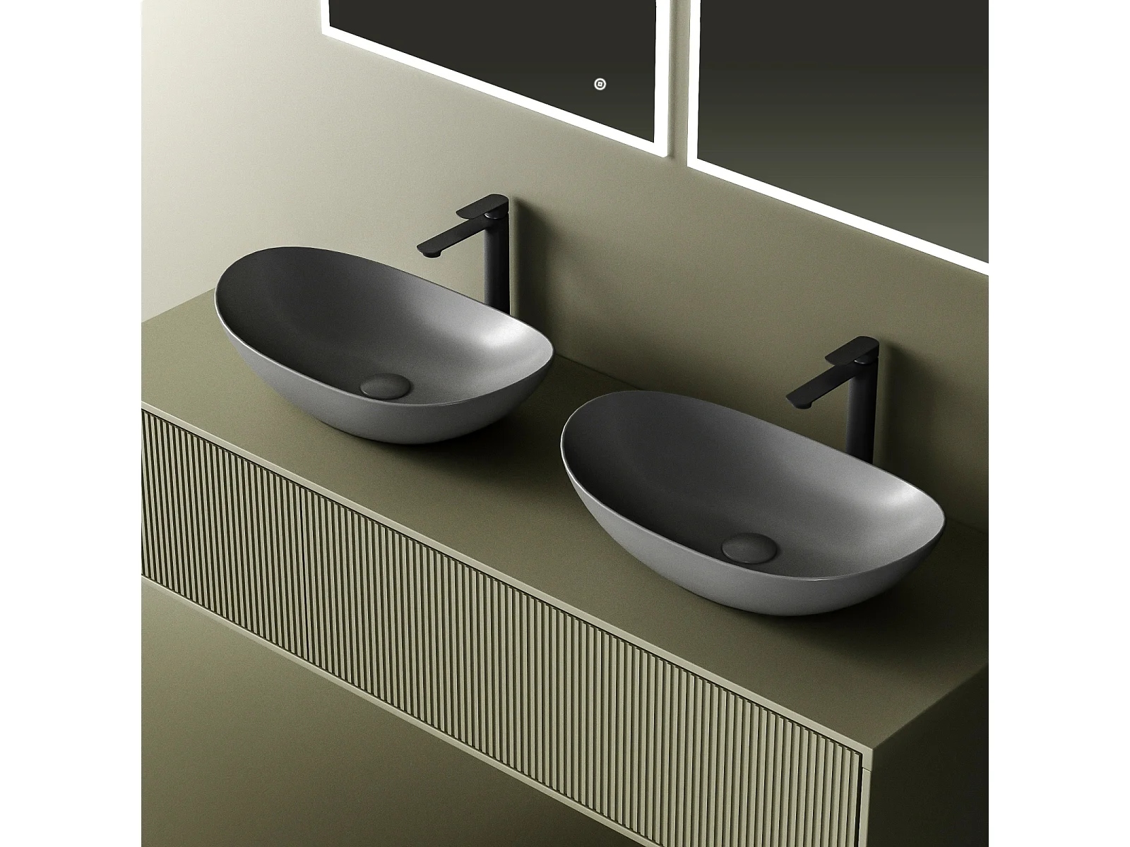 EMKE Aufsatzwaschbecken aus Keramik, 615 x 360 x 155 mm, oval, dunkelgrau